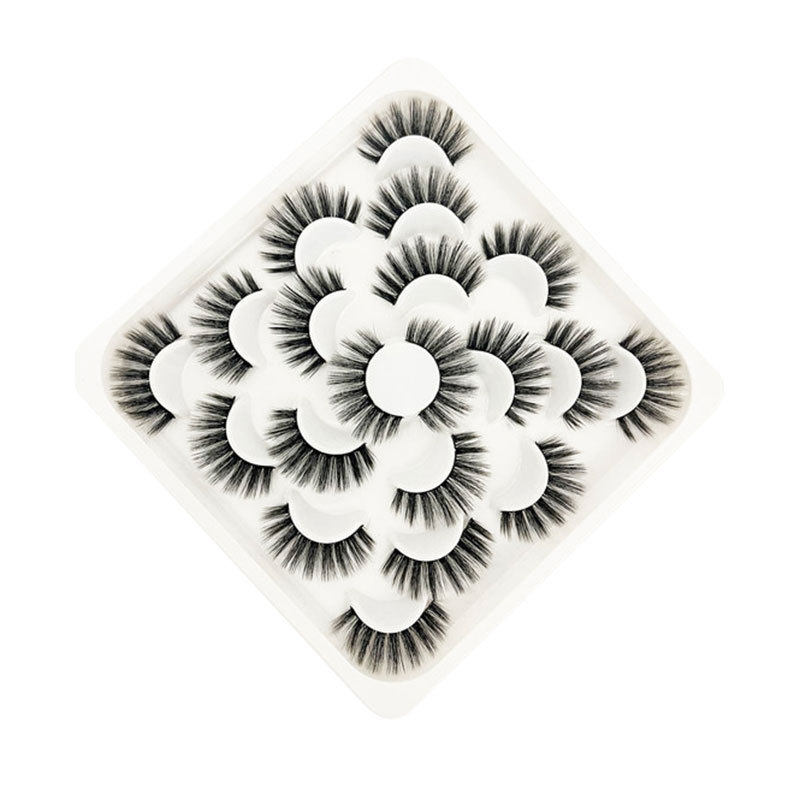 厂家批发十对装莲花台化纤眼睫毛夸张6D9D假睫毛磨尖仿真跨境睫毛