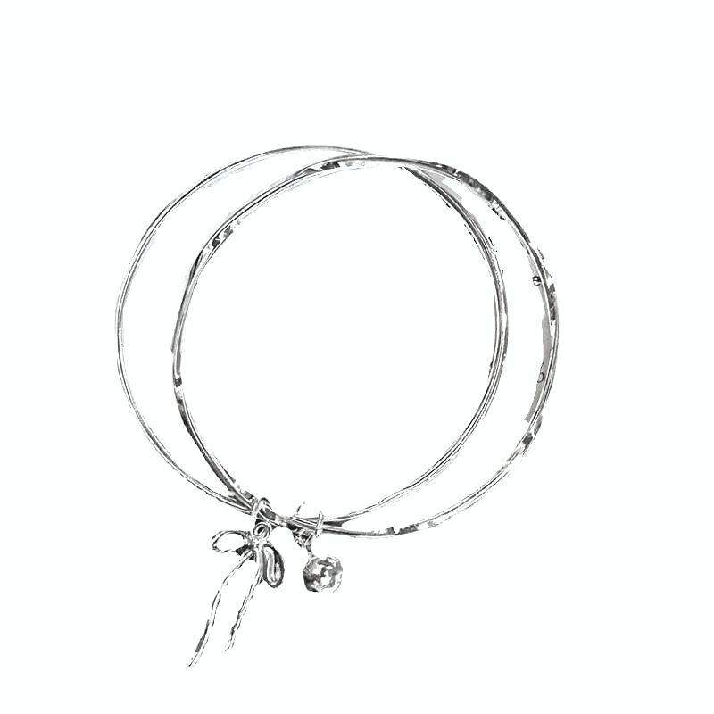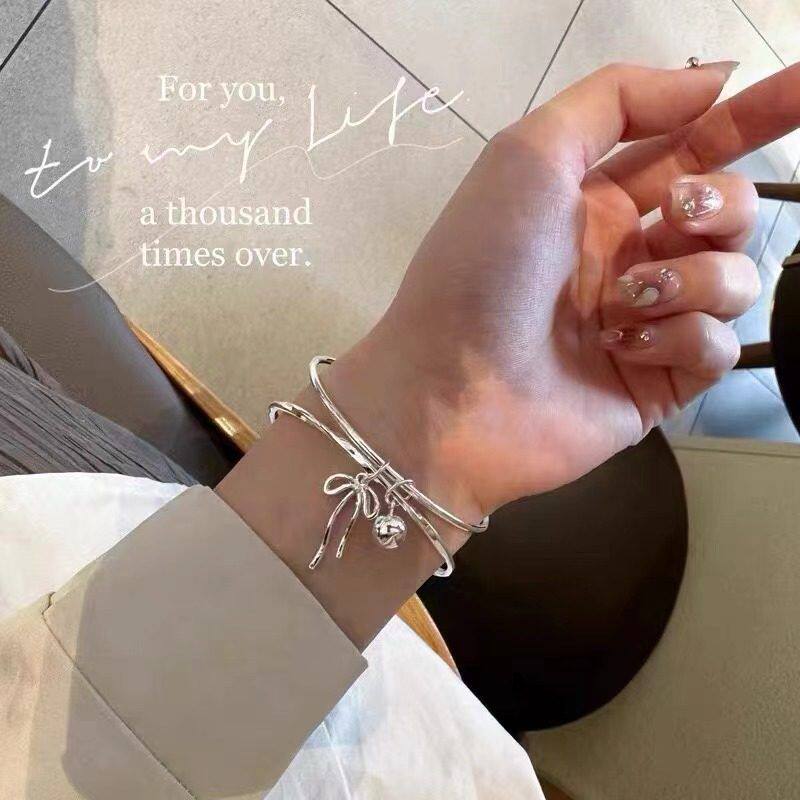 【幂琳】银手镯女纯银9999双环闭口蝴蝶结铃铛足银手镯简约百搭首