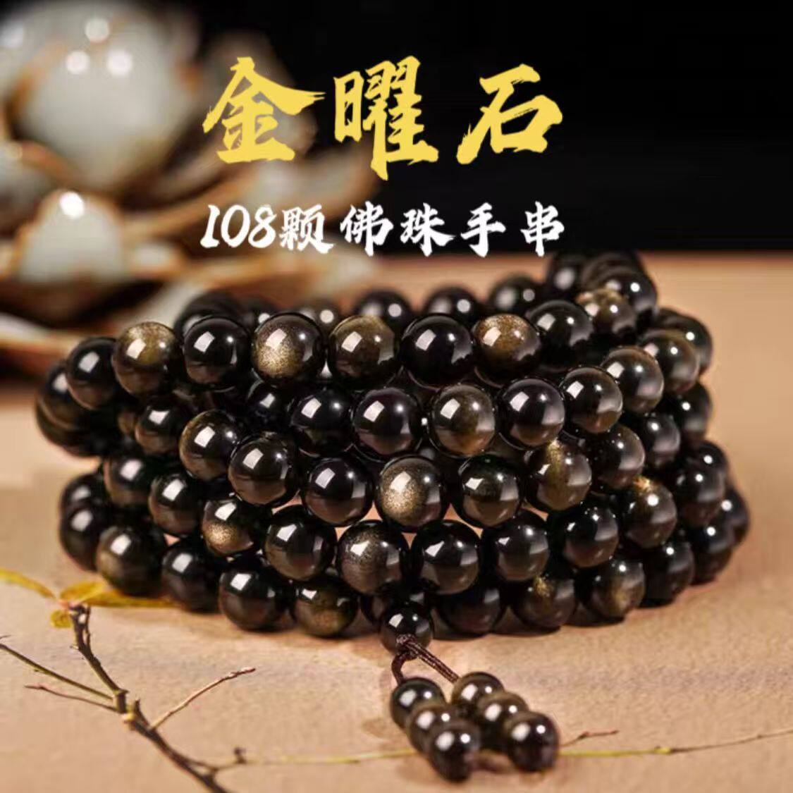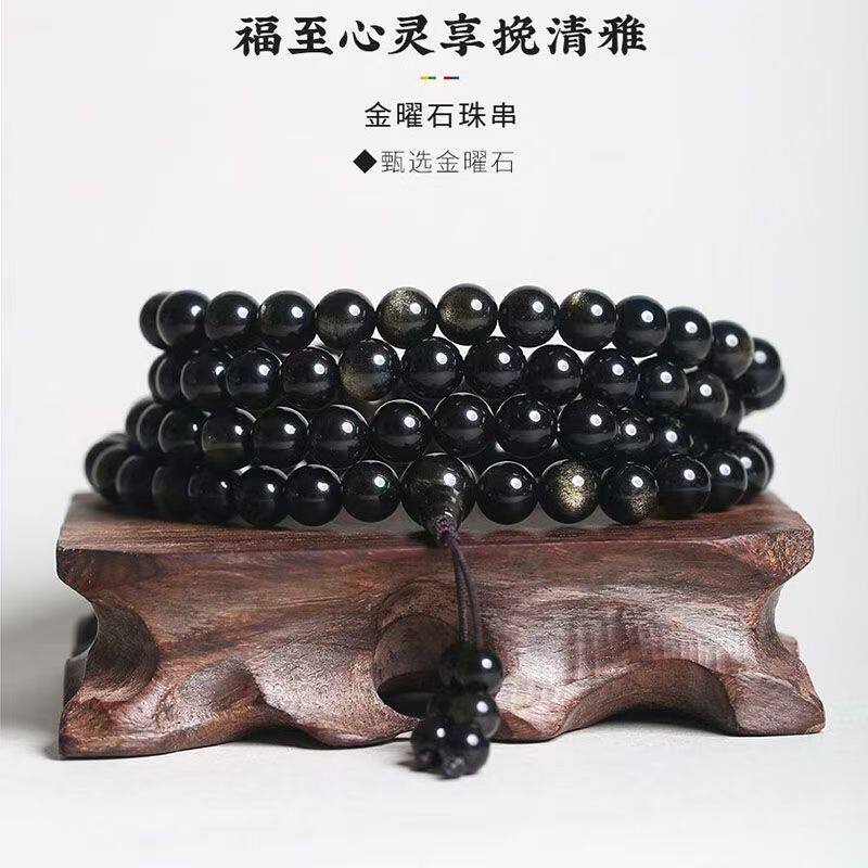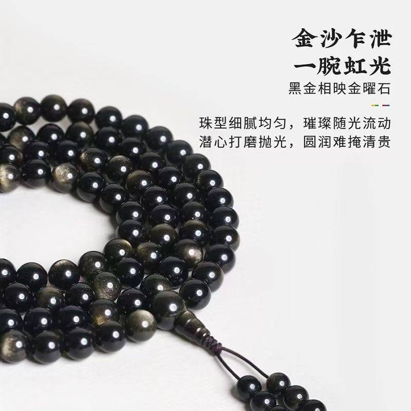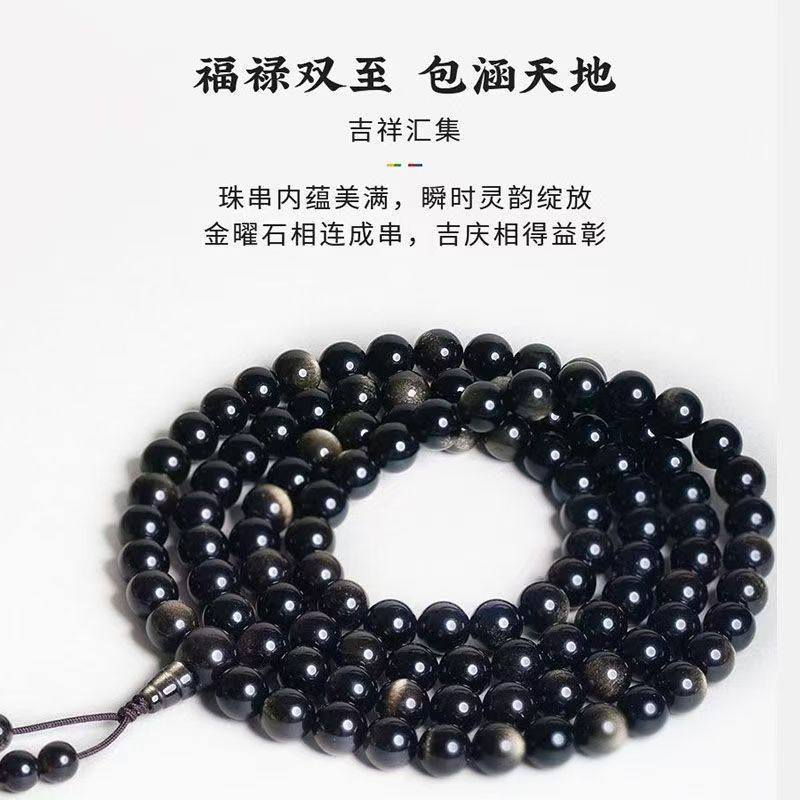 吉祥如意天然金曜石108颗福禄双至包含天地佛珠手串黑曜石多圈