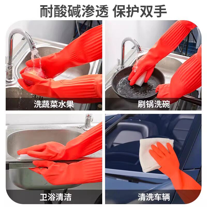 洗碗手套女家用厨房耐用型贴手防水胶皮手套刷碗做家务清洁洗衣服