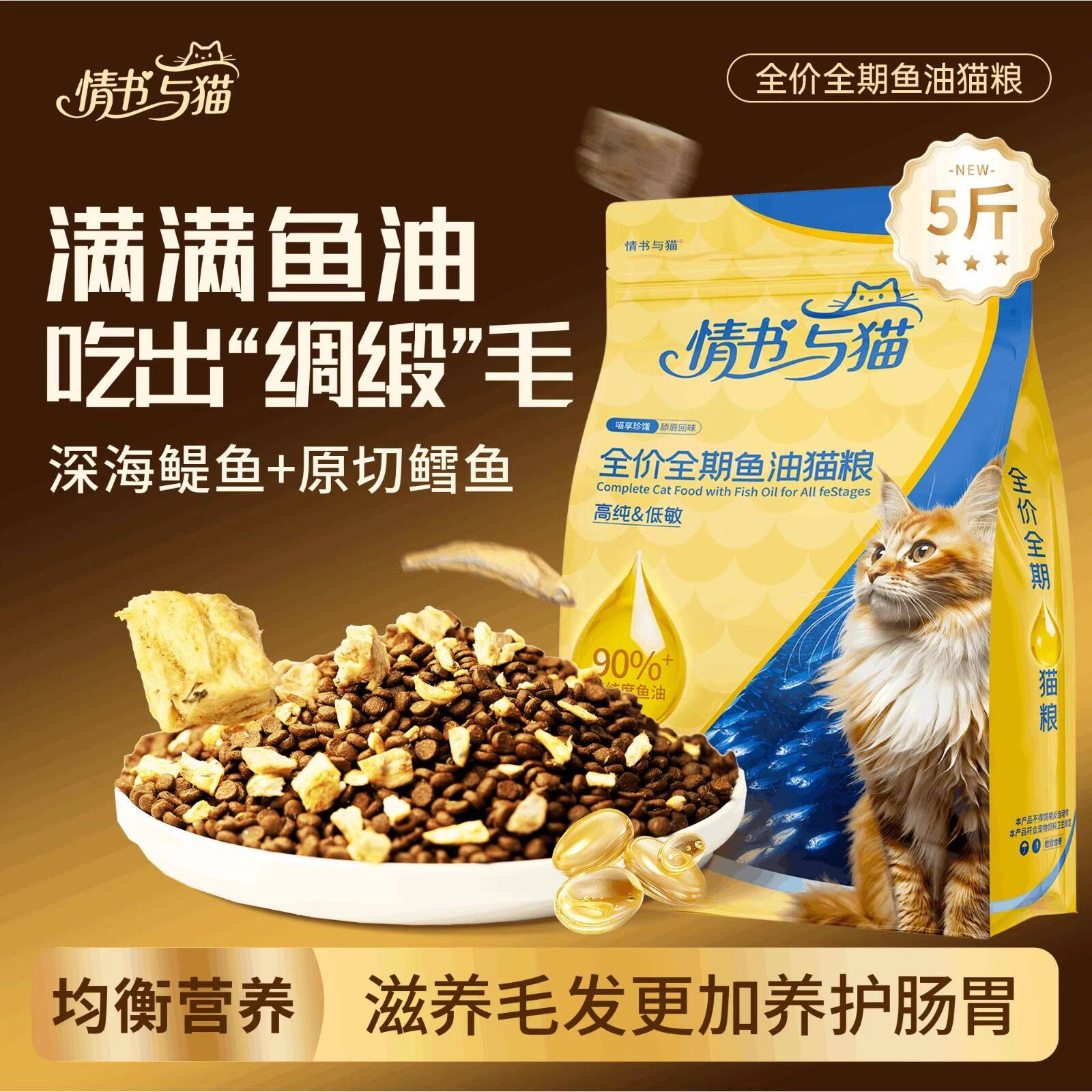 情书与猫鱼油猫粮毛发养护营养均衡猫咪美毛全价全期5斤装猫粮