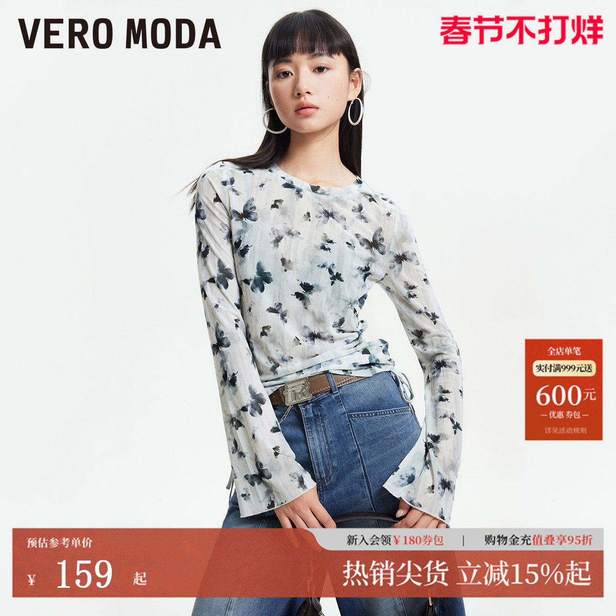 Vero Moda上衣2026春季新款潮流蝴蝶印花长袖薄纱T恤女美式辣妹风