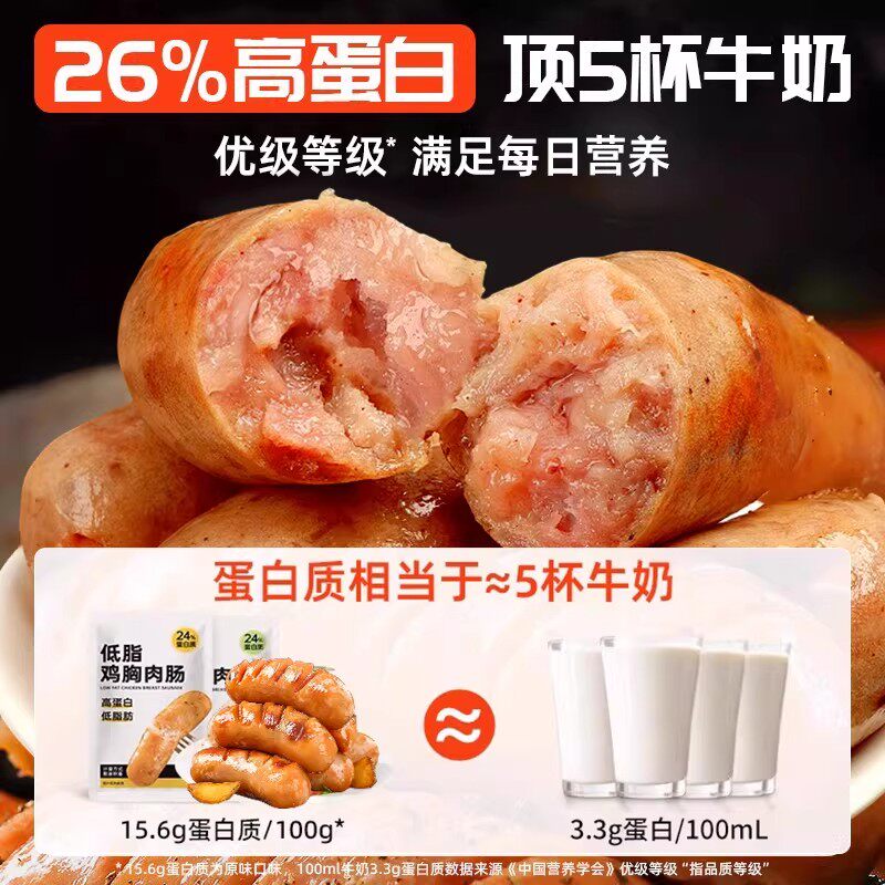 鸡肉肠早餐即食饱腹鸡胸肉肠减0低脂肥期卡健身代餐轻主食零食品