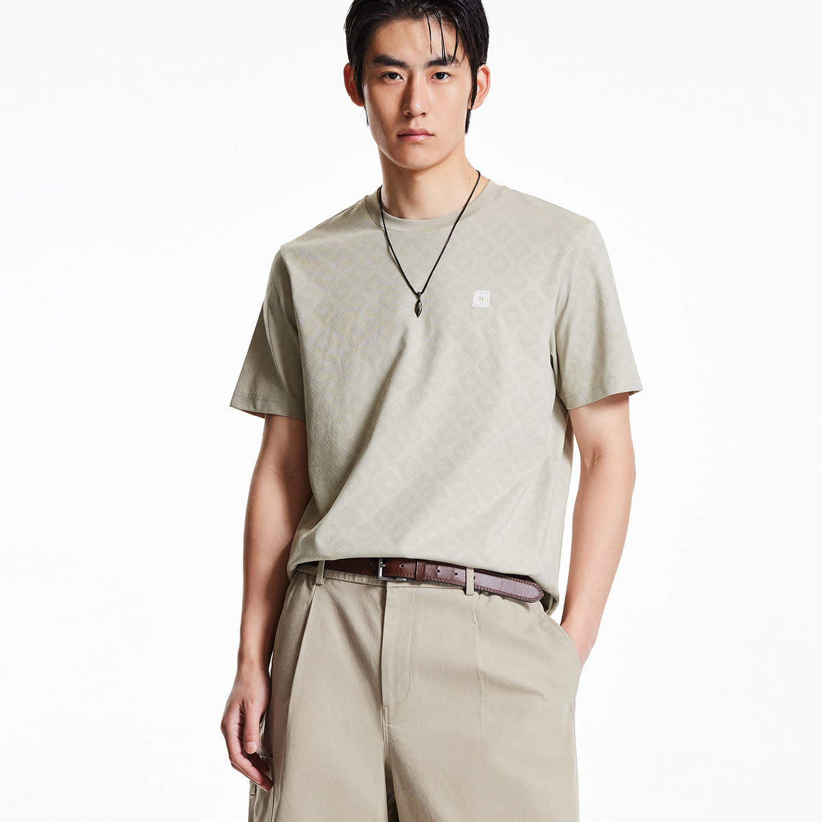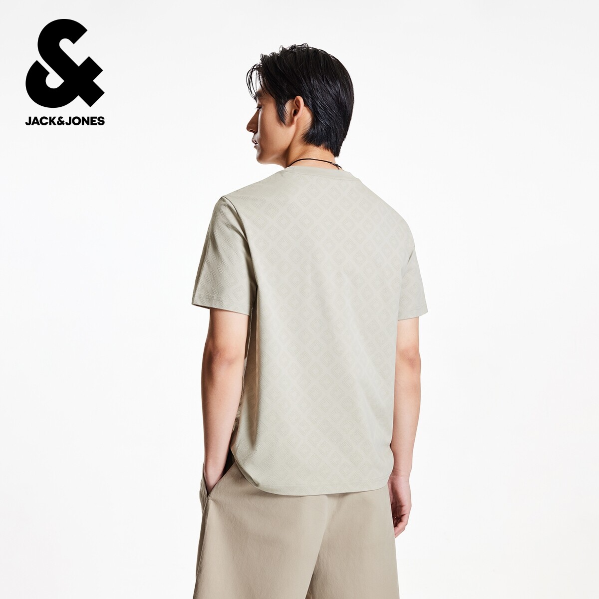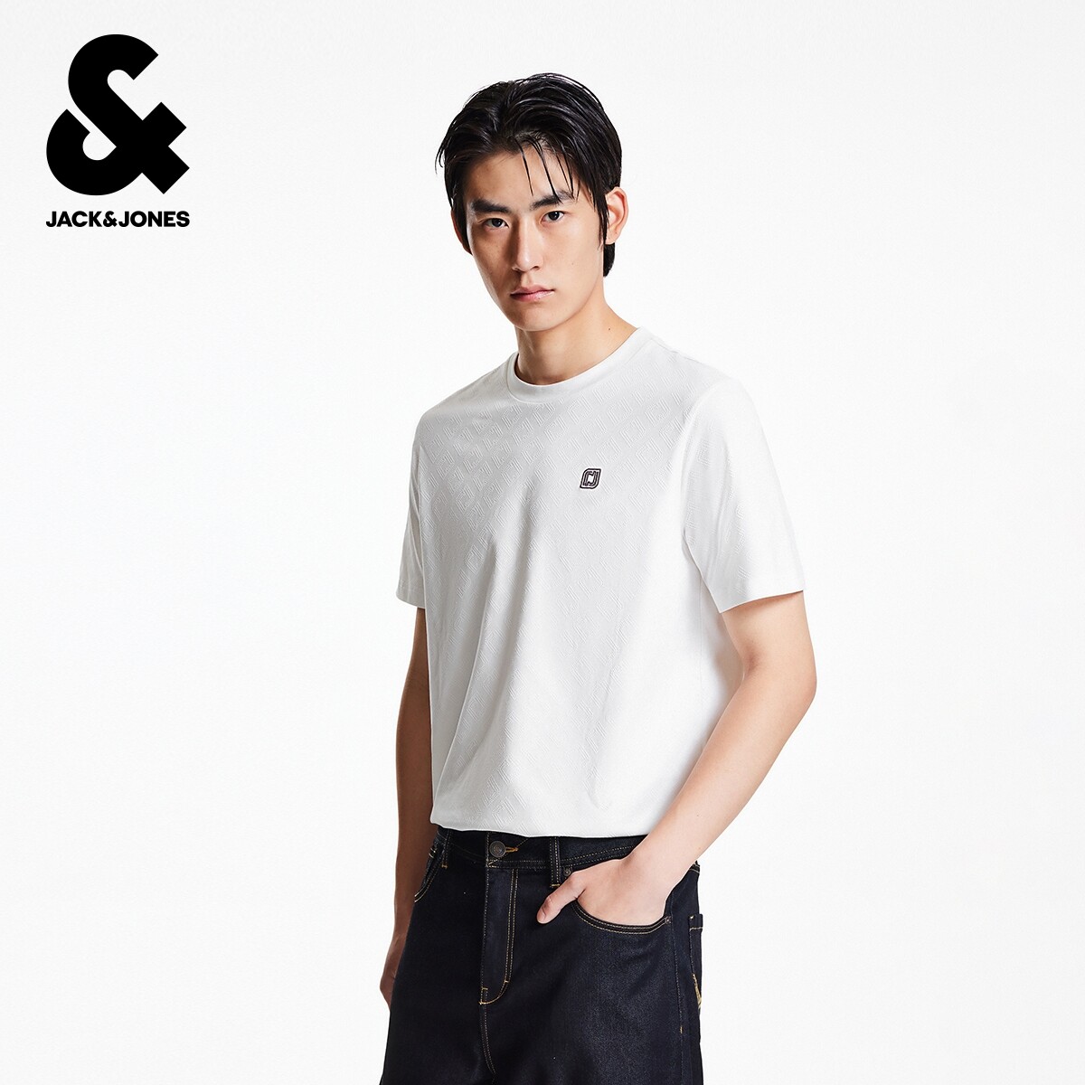 杰克琼斯夏季短袖T恤男装时尚百搭流行圆领立体几何图案常规
