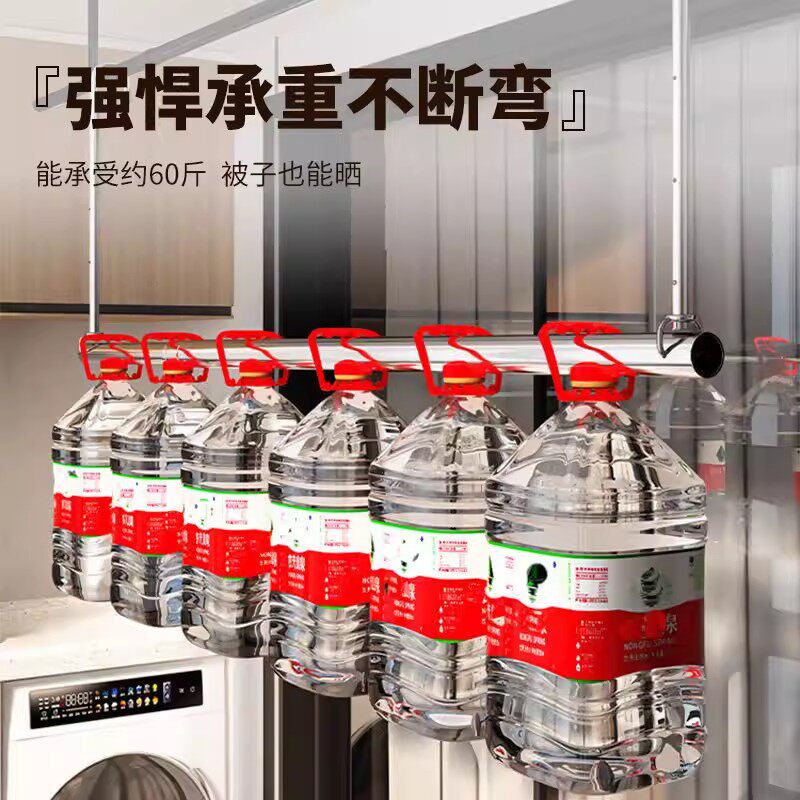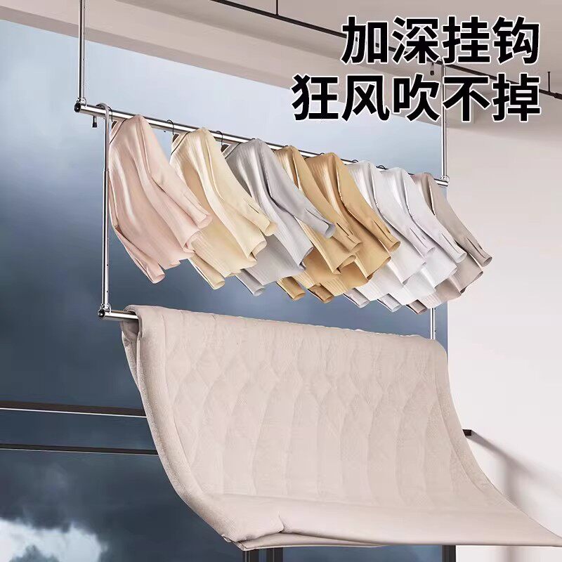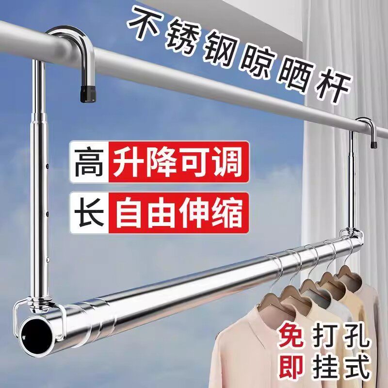 伸缩晾衣杆阳台悬隐形挂钩式晾衣架免打孔家用晒被子衣服神器升降