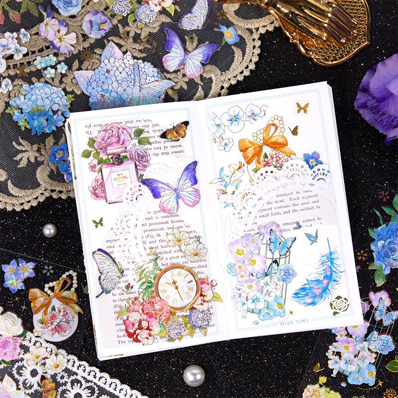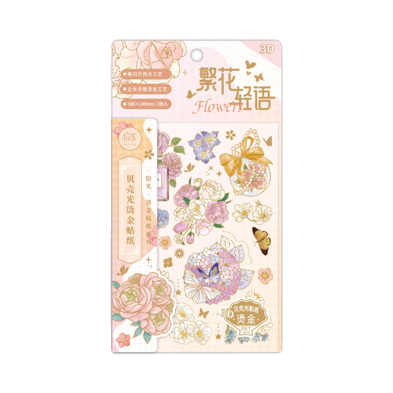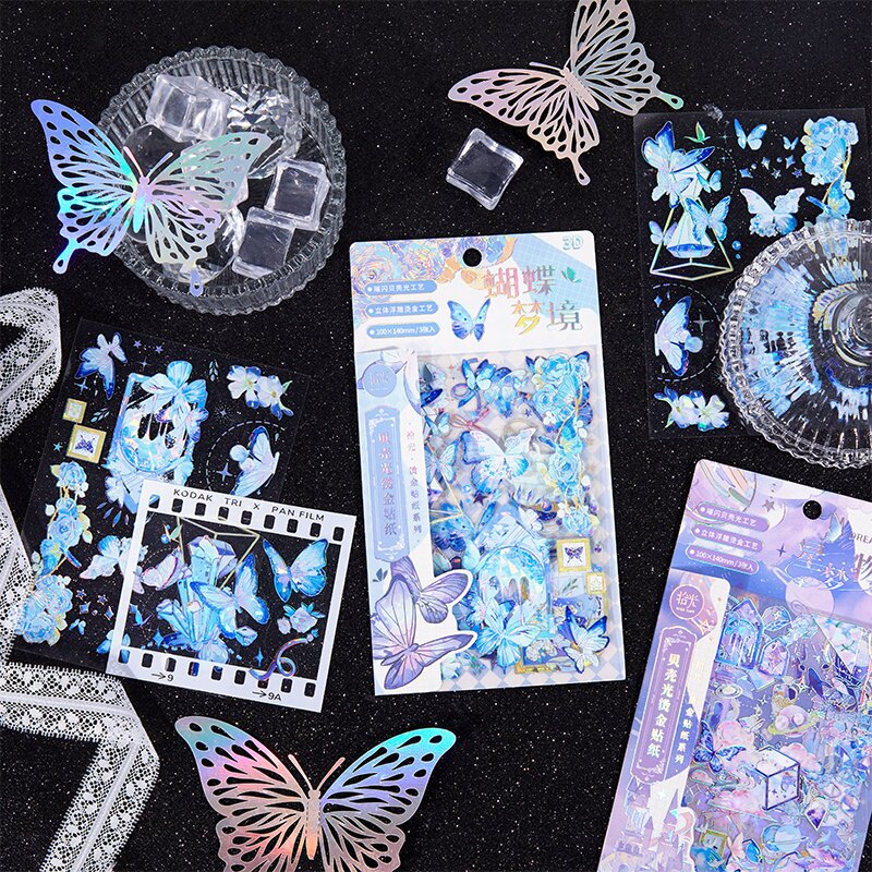 拾光贝壳光烫金PET贴纸 蝴蝶梦境系列轻复古贴纸手账咕卡流麻贴纸