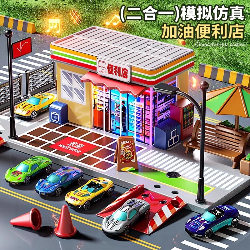 加油站儿童玩具2026仿真男孩3岁到5岁生日礼物洗车益智停车场合金
