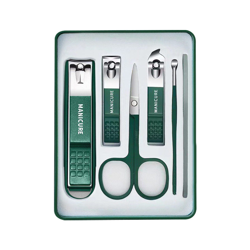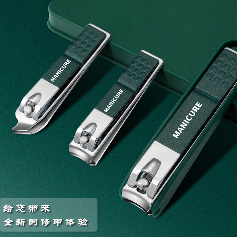 指甲刀套装家用斜口指甲剪高档修甲剪专用修脚工具防飞溅绿色便携