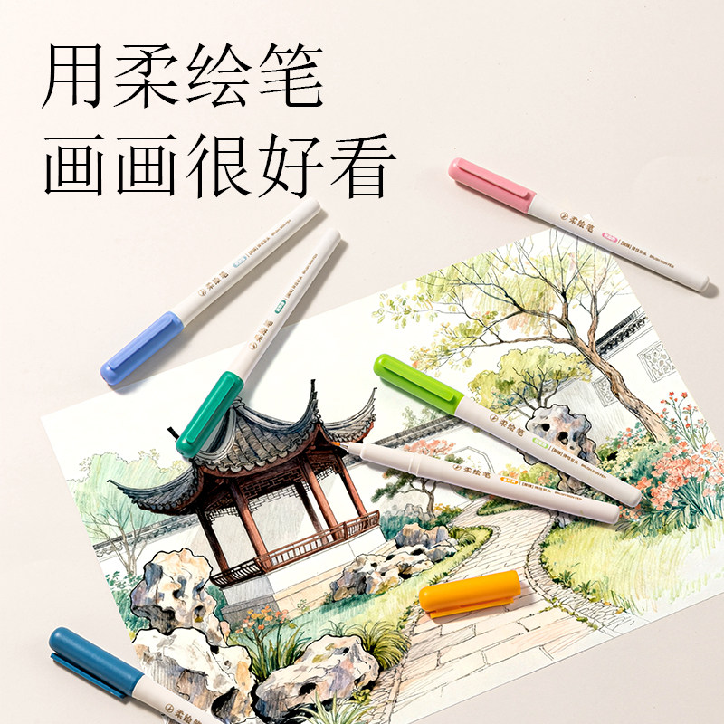 得力软头柔绘笔勾线笔纤秀笔秀丽笔马克笔美术专用手账笔礼盒绘画水彩笔涂鸦思维导图练字书法小楷动漫美术笔