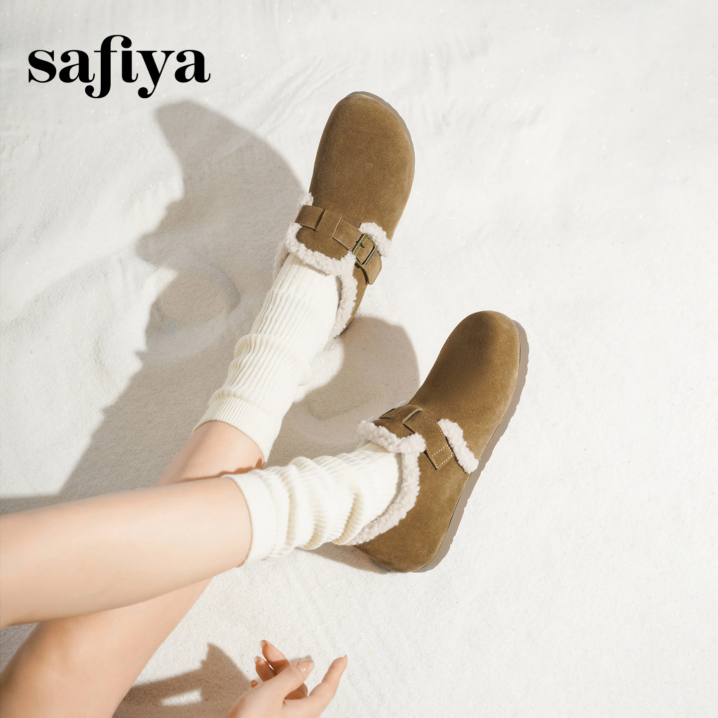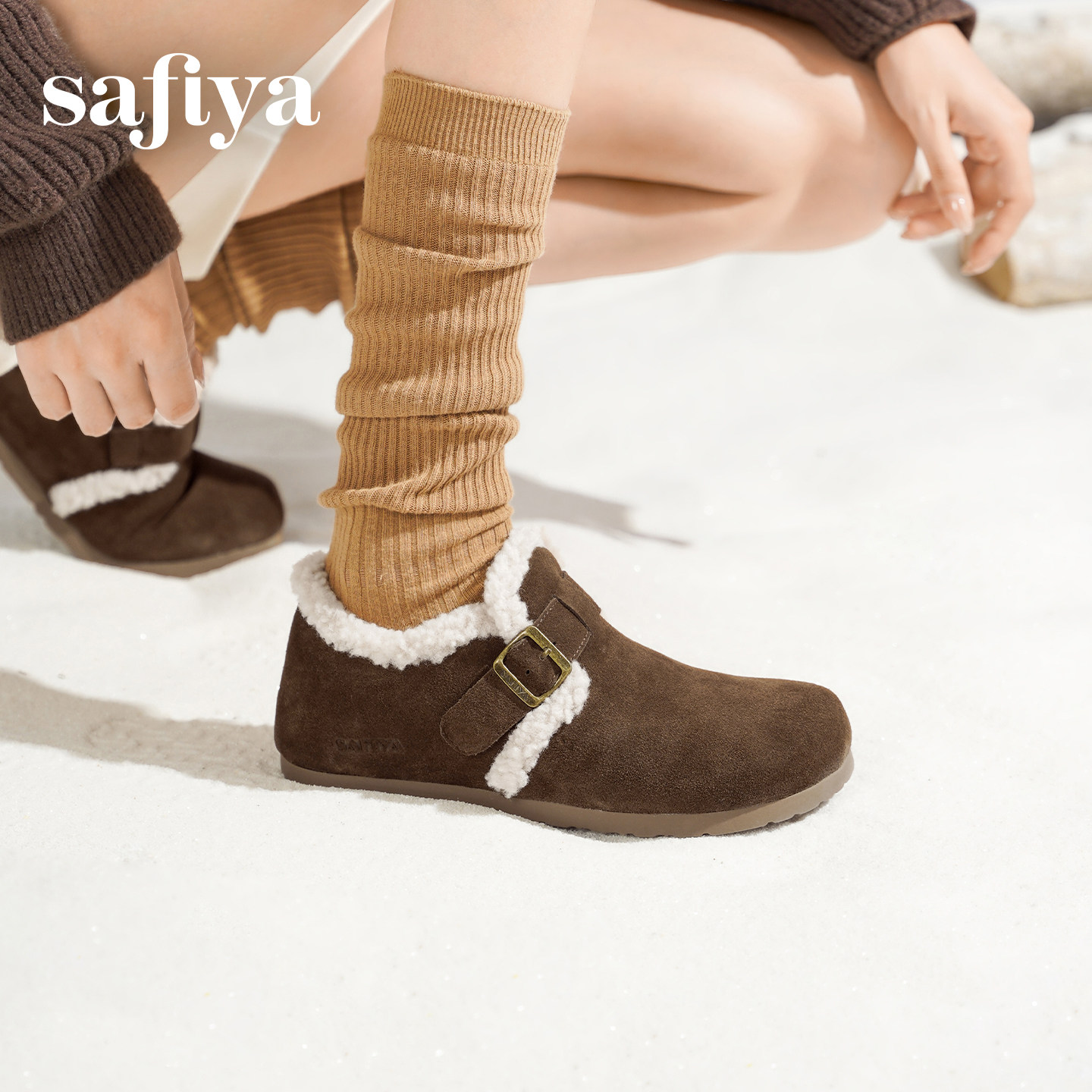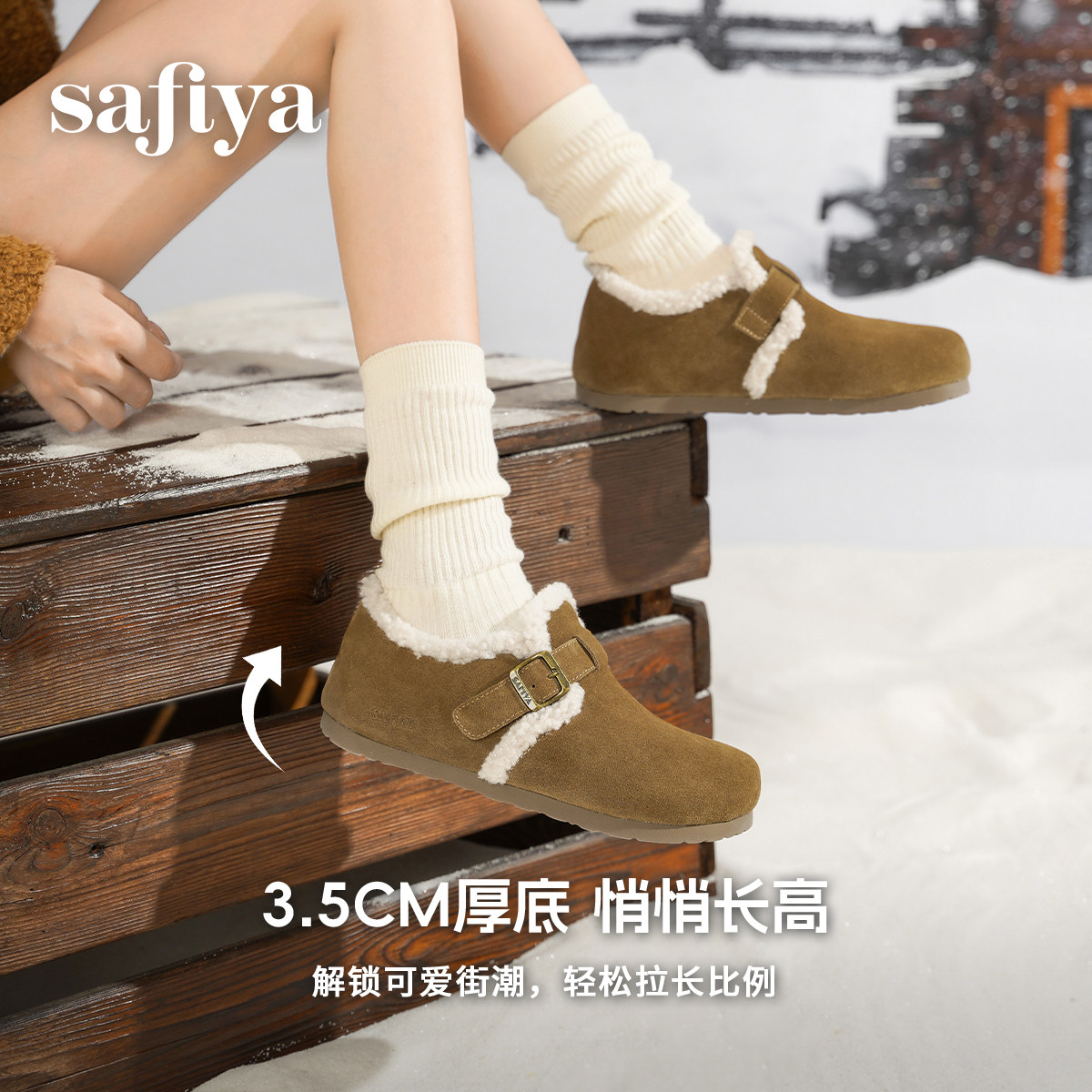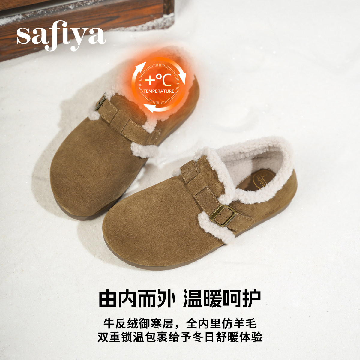 Safiya/索菲娅2025年冬季新品加绒一脚蹬毛毛雪地靴全包勃肯鞋女