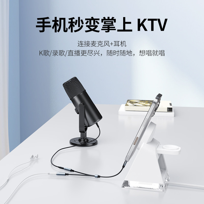 达而稳 电脑转耳机麦克风一分二转接头3.5mm音频线台式机主机二合一转换器手机耳麦话筒二转一延长1分2线