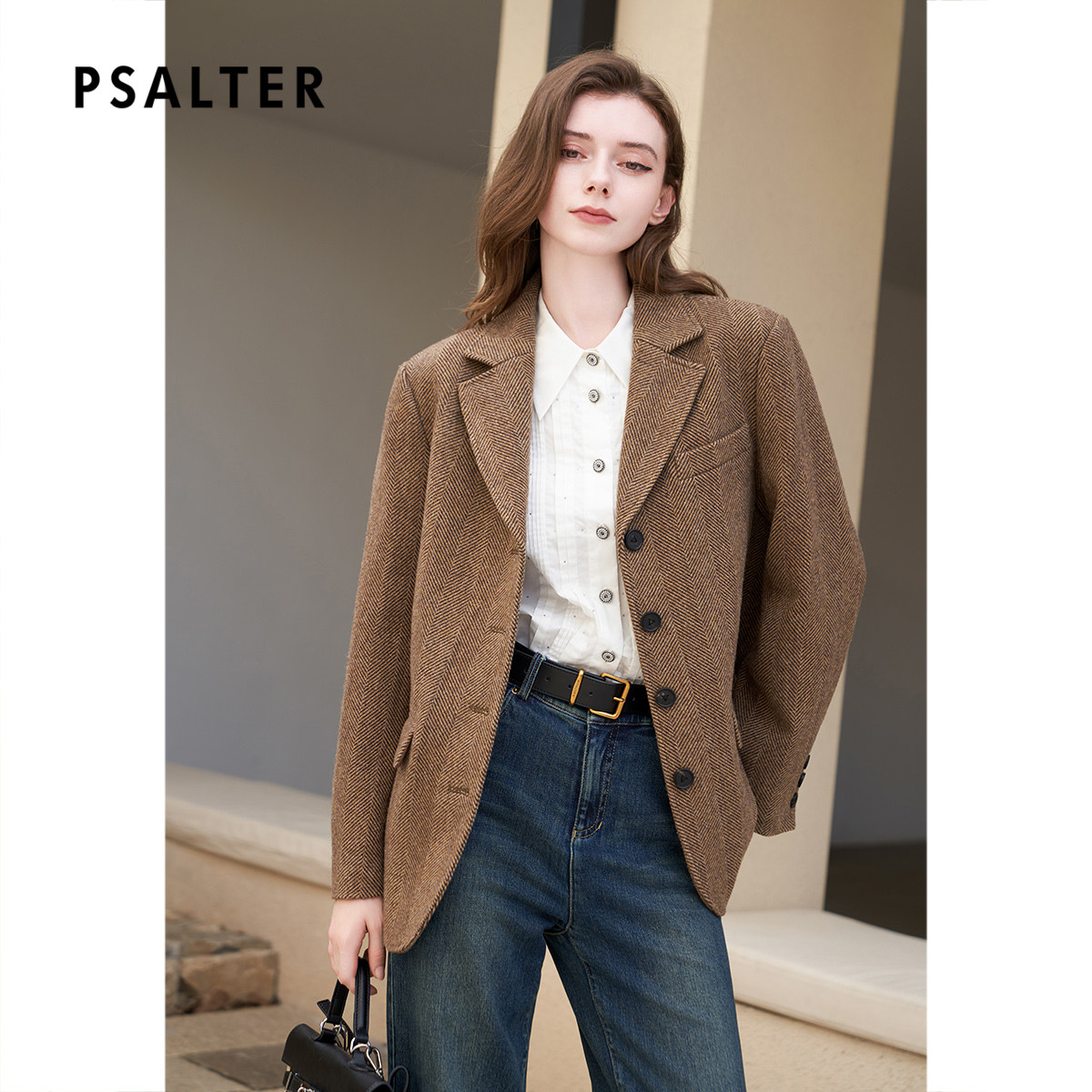 【100%绵羊毛】诗篇专选雅丹风人字纹肌理西装毛呢外套冬款