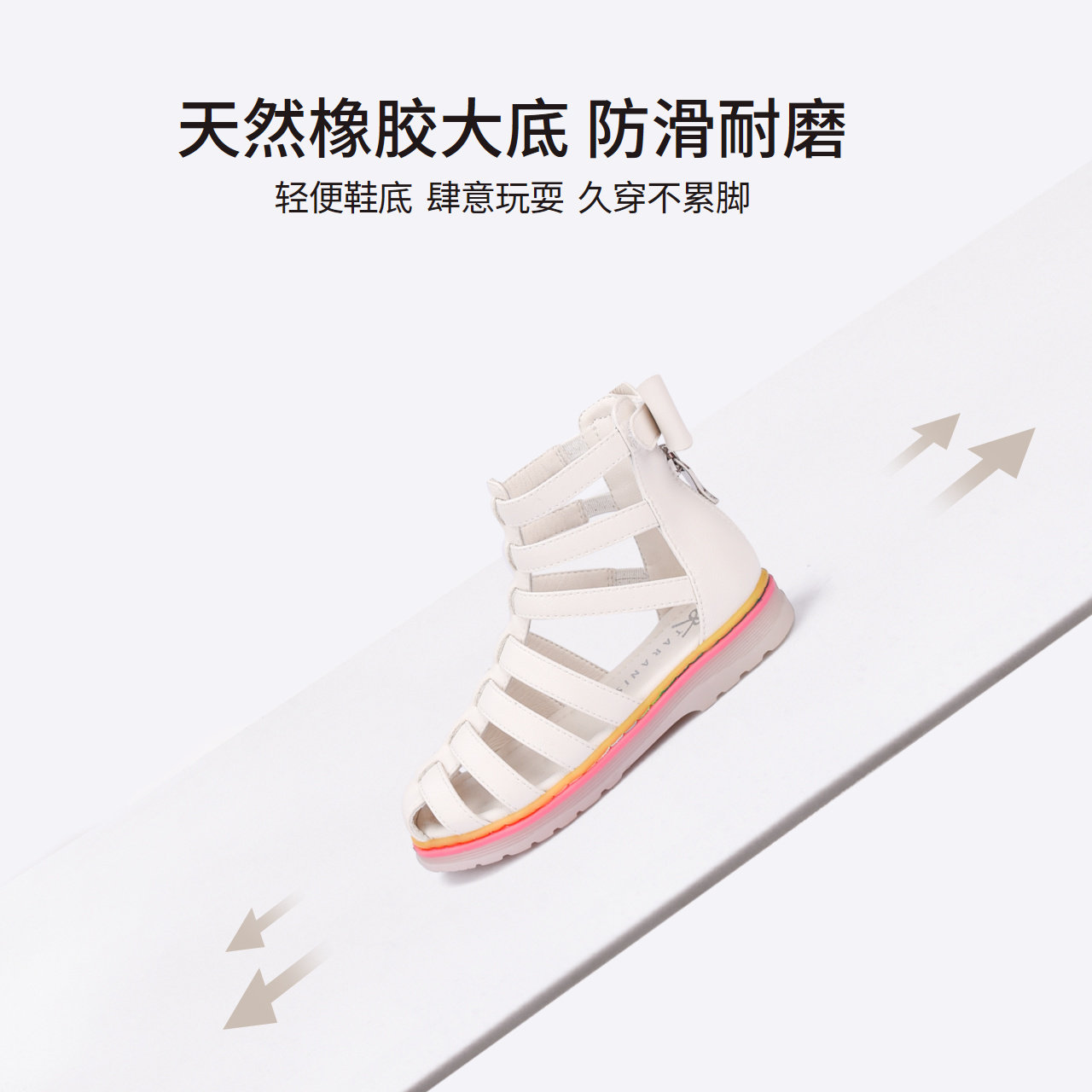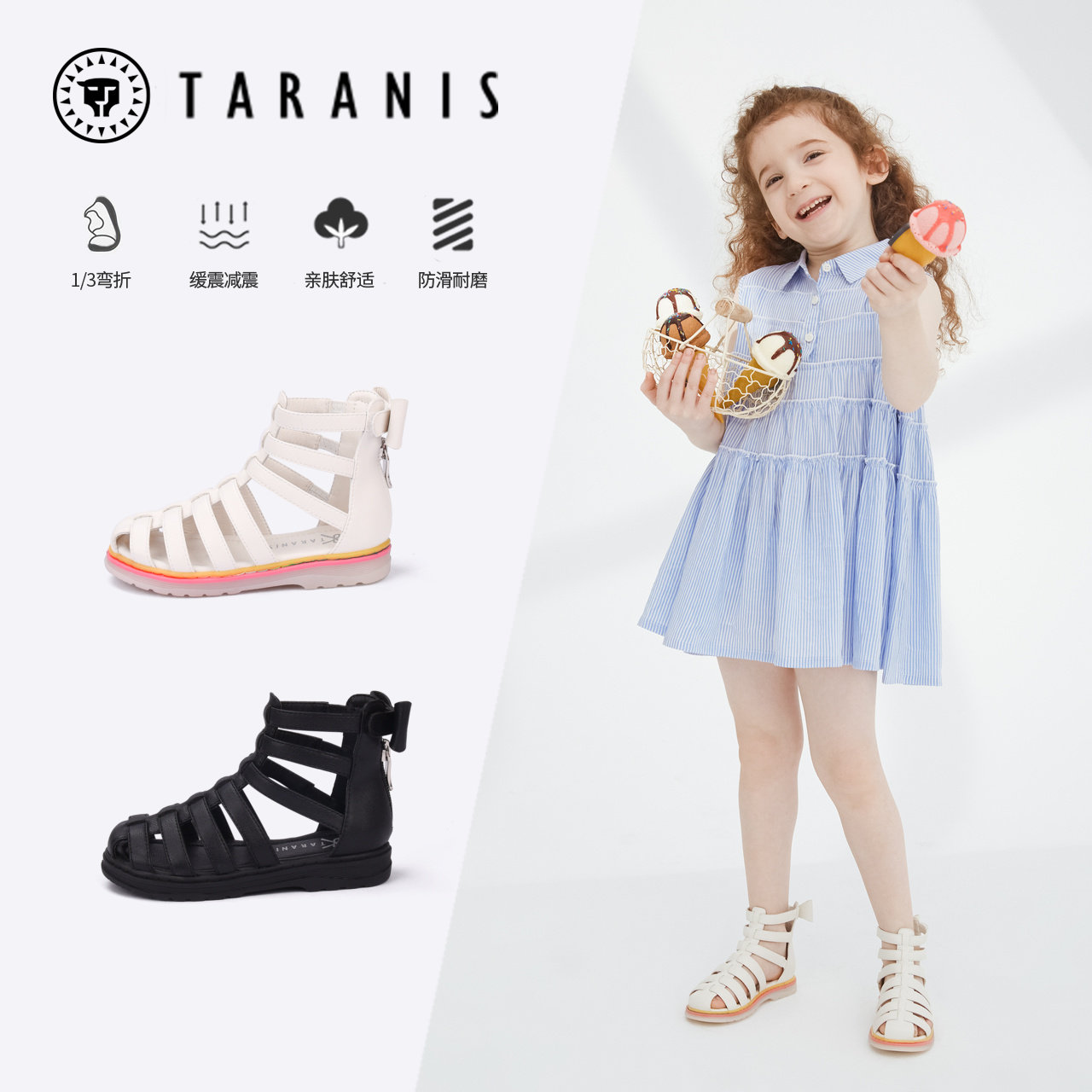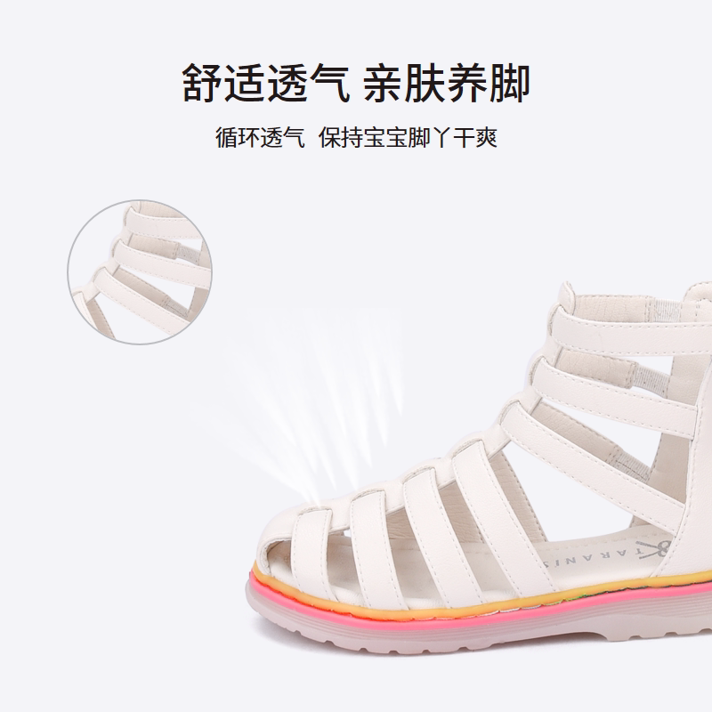 泰兰尼斯新款果冻软底黑色罗马鞋拉链设计女童鞋子时尚儿童凉鞋夏
