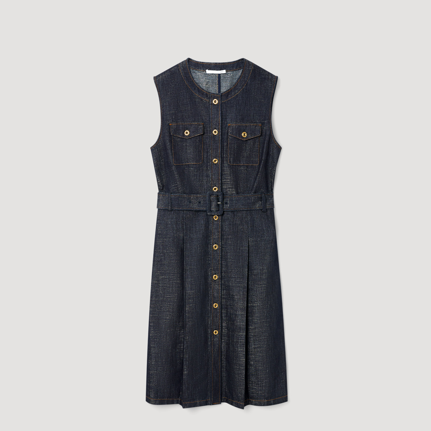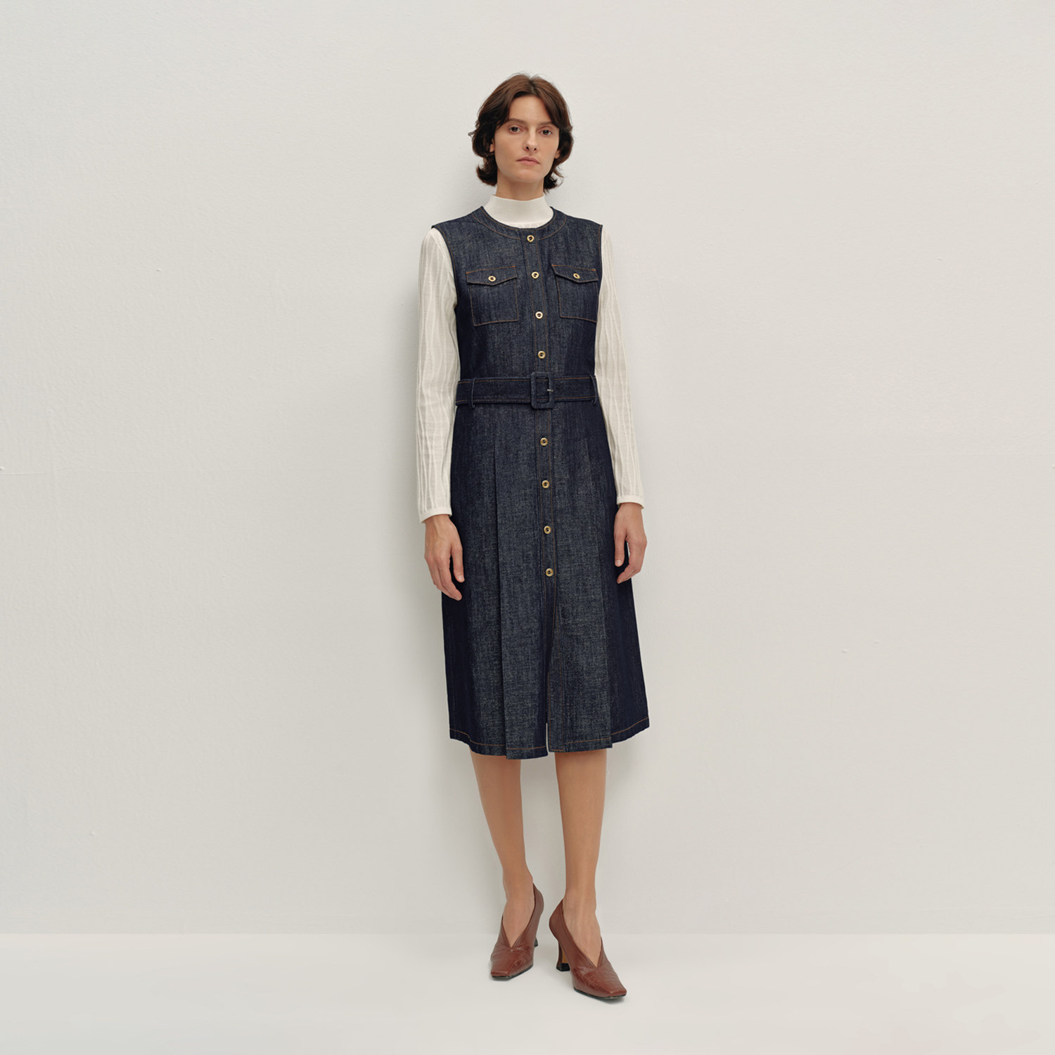 OVV2025秋冬新款女装意大利进口面料圆领无袖A字牛仔连衣裙