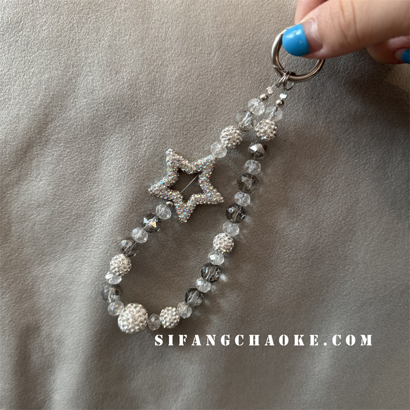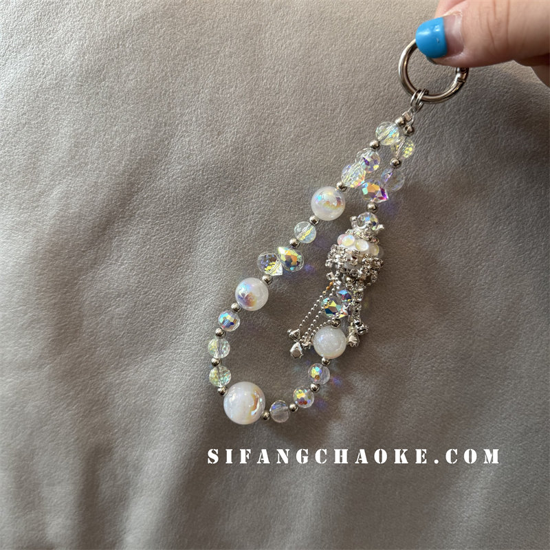 奢华高级感水晶手提链条手腕短挂绳带夹片壳钥匙扣包包挂件潮