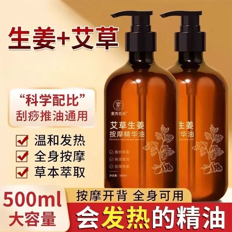 生姜艾草按摩精油全身体通经络老姜发热免洗刮痧开背推背肩颈推拿