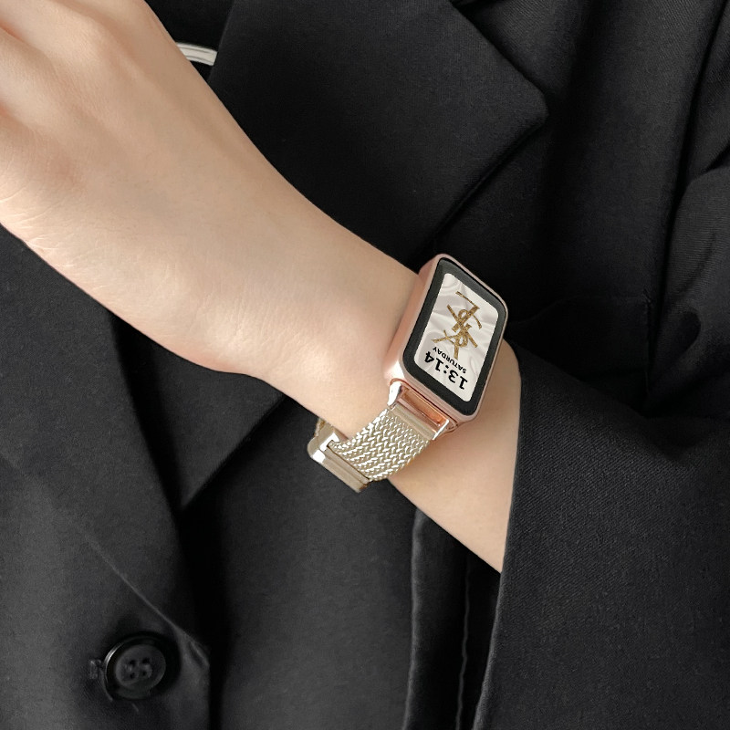 适用华为手环10/9/8手表带链新款夏天7nfc版荣耀智能运动6pro金属磁吸女生替换手腕带band8高级感表链玫瑰金