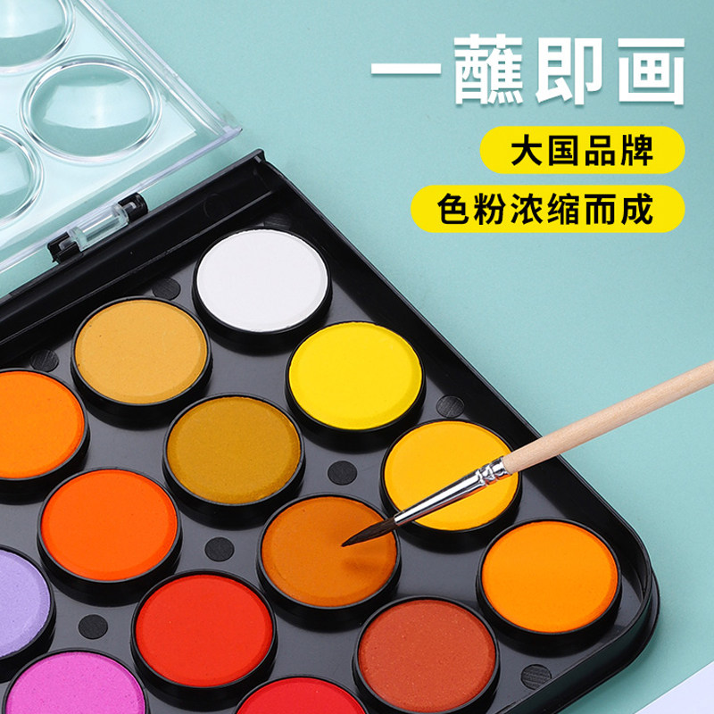 晨光固体水彩颜料初学者儿童绘画手绘颜料36色48色盒装便携式专业美术画画水粉广告画颜料白色水彩粉饼