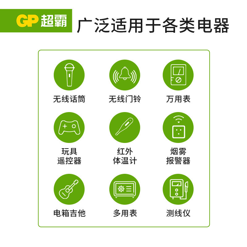 GP超霸黑超9V方块九伏碳性电池万用表万能表音响无线话筒麦克风烟感器方形干电池