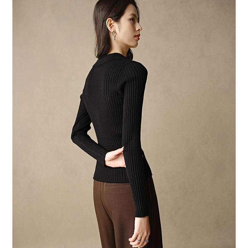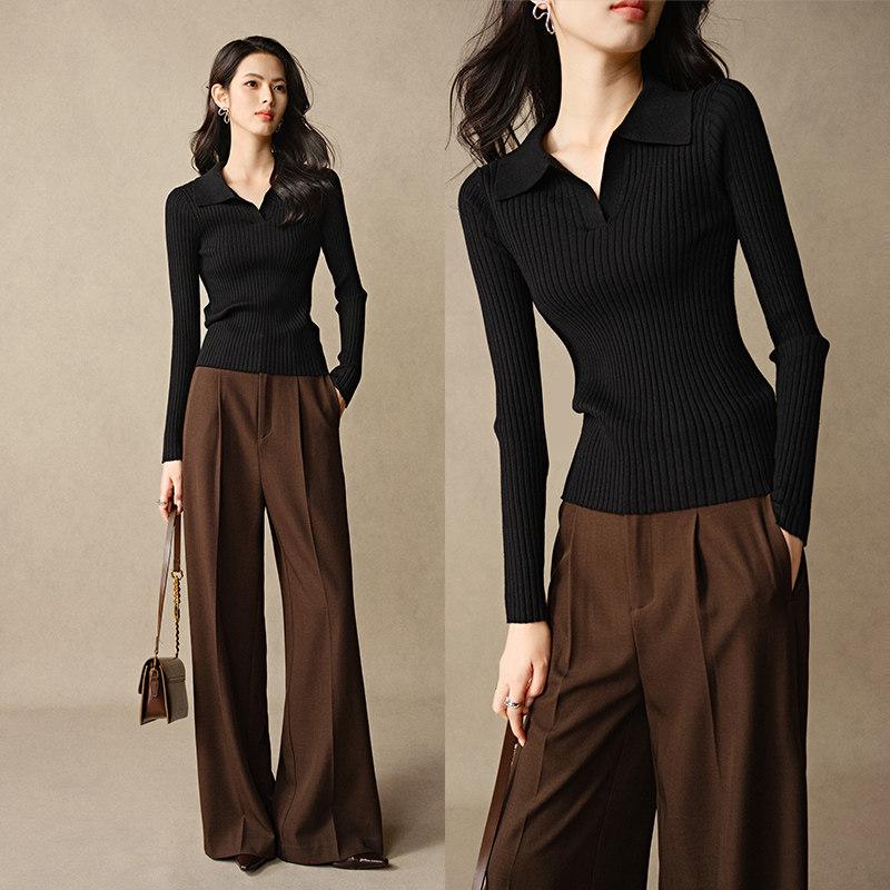晚白2026年春新款时尚简约休闲上衣气质翻领显瘦针织衫女