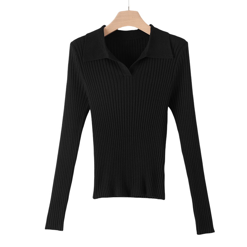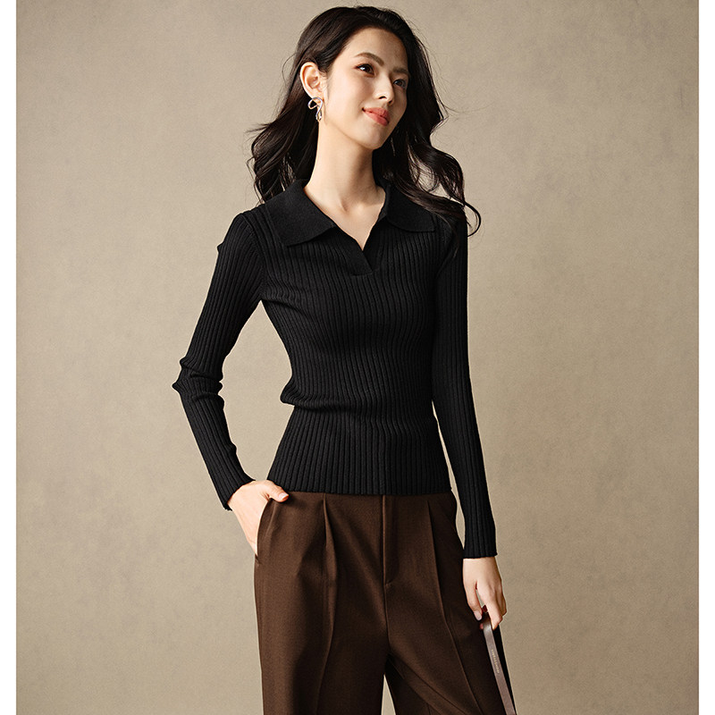 蕉下针织衫polo领肌底衣修身显瘦新款白色长袖T恤内搭上衣打底衫