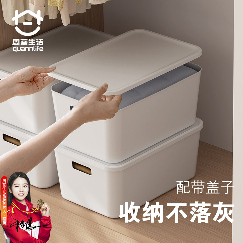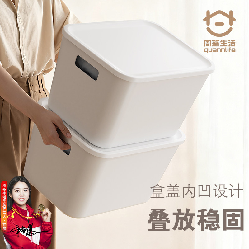 日式桌面收纳盒厨房杂物零食玩具整理盒带盖长方形橱柜储物收纳筐