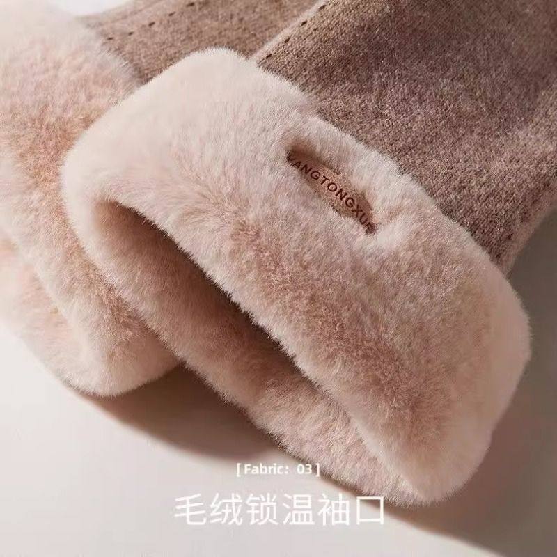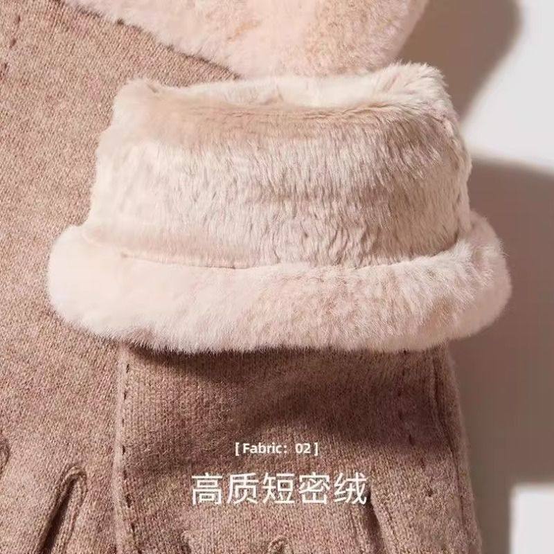 羊毛手套女冬季保暖加绒加厚骑车触屏学生自行车滑雪防寒防风德绒
