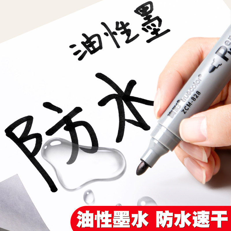 真彩记号笔黑色油性笔标记笔大头笔粗头马克笔勾线笔防水防油不掉色物流快递专用批发大容量速干水笔红色工地