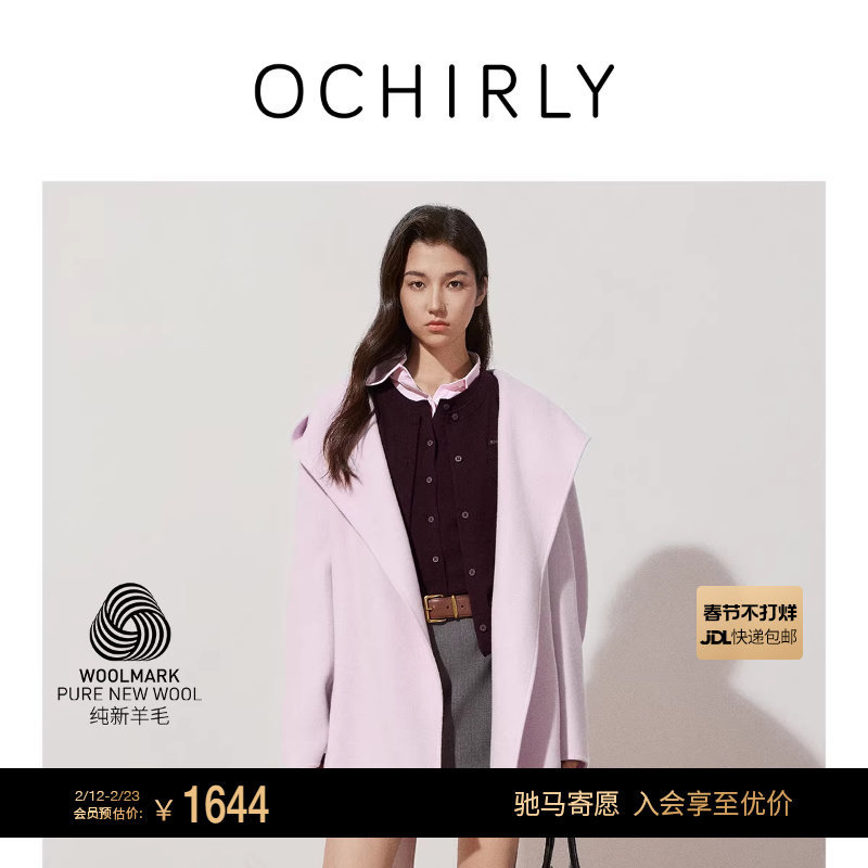 【Woolmark认证】OCHIRLY欧时力 100%羊毛呢袍式外套腰带2025秋冬