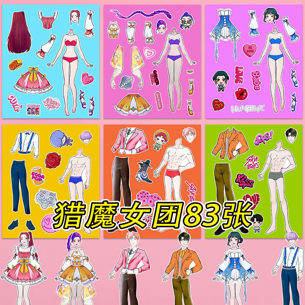 猎魔女团Kpop大张版精美换装贴纸儿童益智趣味手工趣味diy批发
