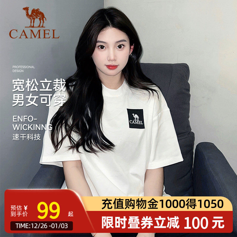 骆驼户外短袖t恤女登山速干上衣男夏季宽松情侣运动半袖快干棉T恤