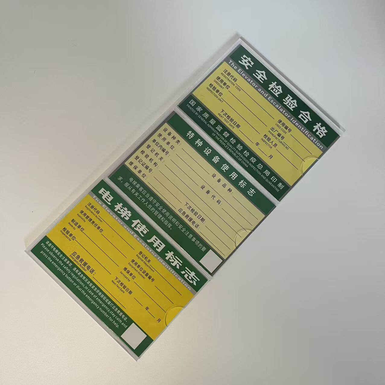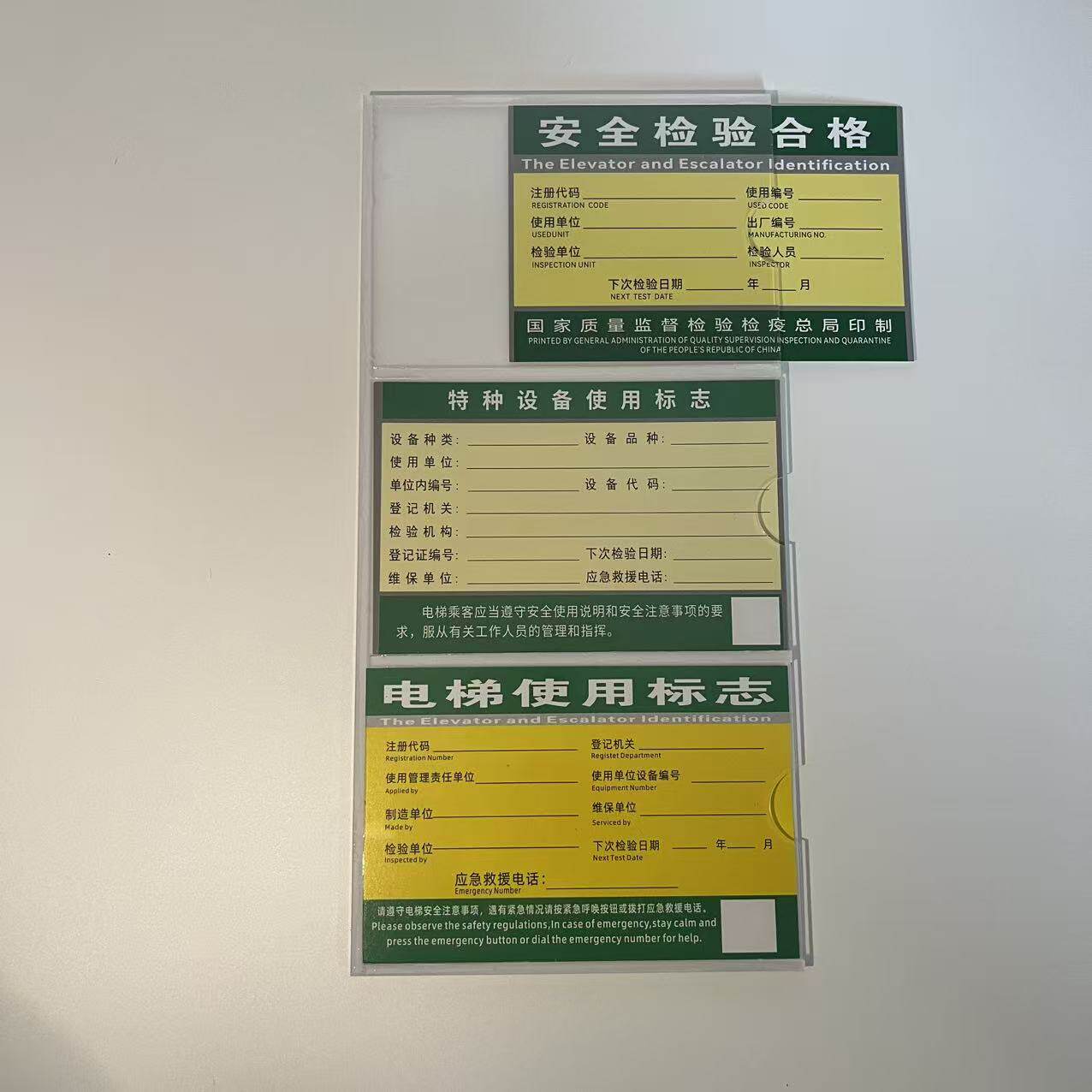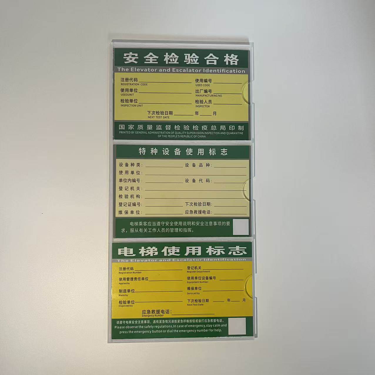 特种检验设备标识牌 电梯检验三合一安全标识 电梯维保合格证使用