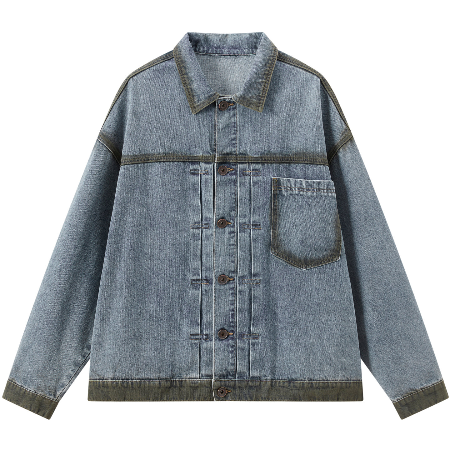 查尔斯桃心 美式复古渐变翻领单排扣百搭宽松牛仔夹克男情侣外套