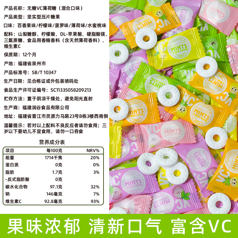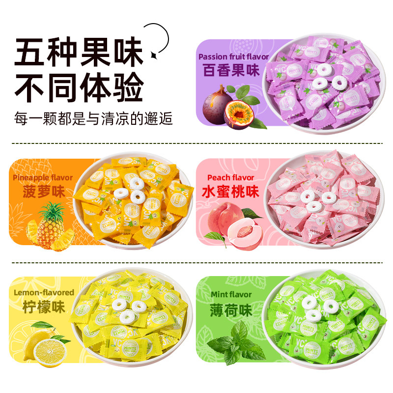无糖圈圈薄荷糖水果糖果零食休闲独立小包装清新口气维C清凉招待
