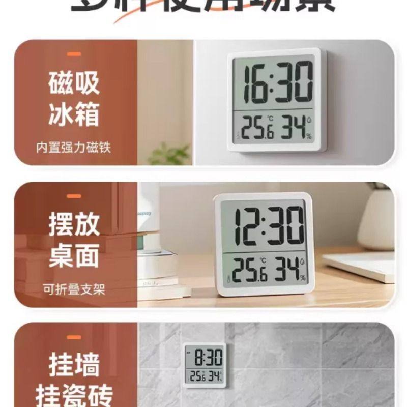 磁吸温湿度计时钟冰箱厨房客厅室内壁挂式电子钟表温度挂墙桌面