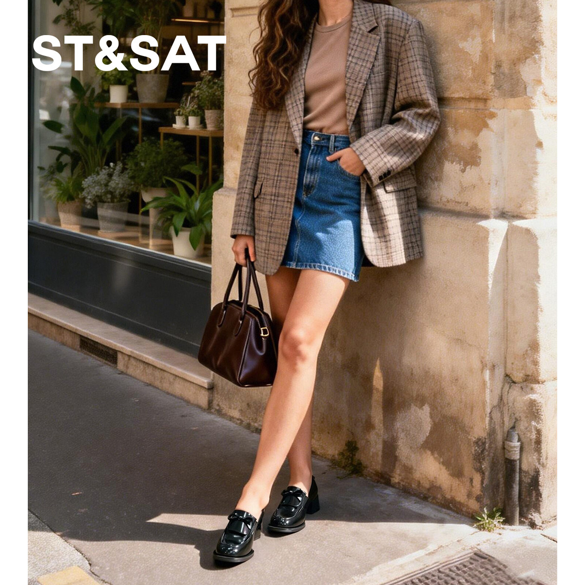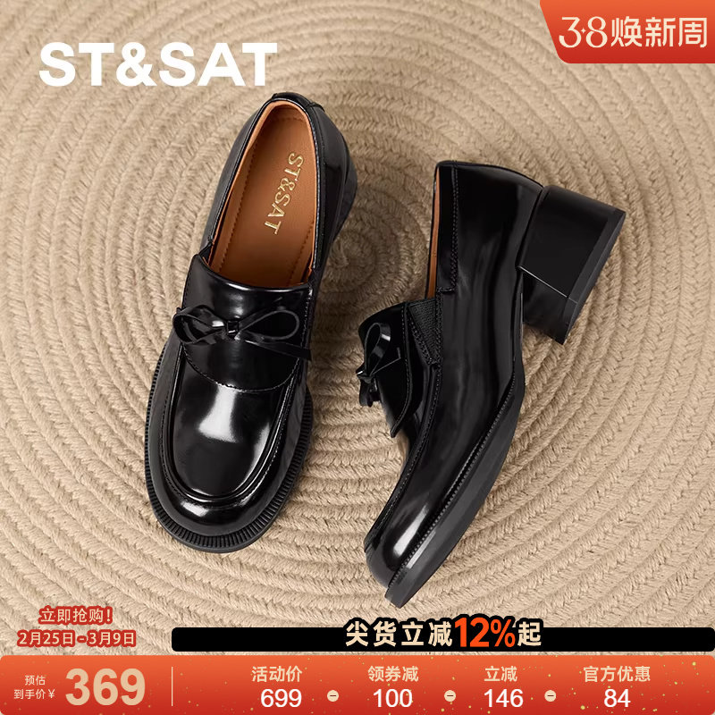 星期六女鞋乐福鞋早春新款法式圆头粗跟亮面小皮鞋英伦风女士单鞋