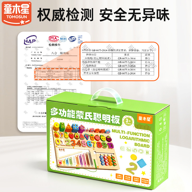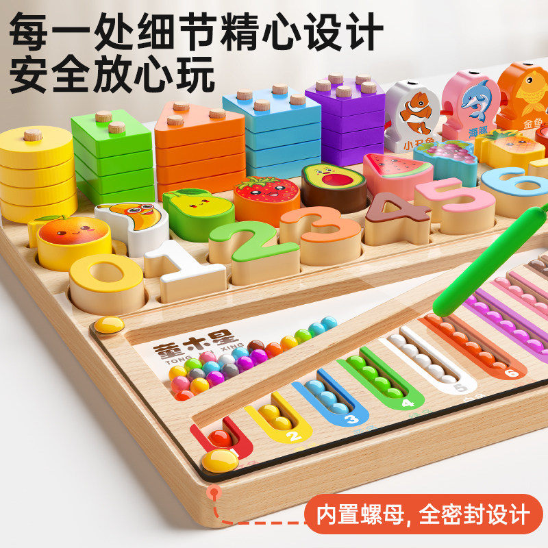 蒙氏聪明板儿童拼图玩具女孩形状配对宝宝0到3岁木质早教益智积木