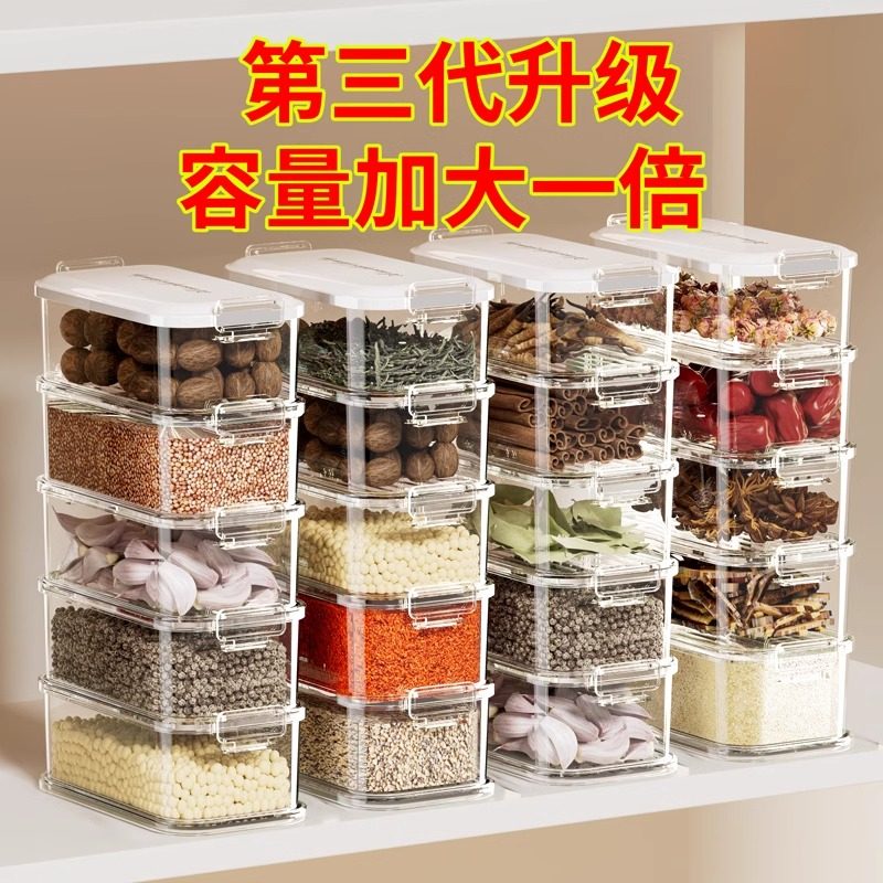 新款香料收纳盒厨房家用八角桂皮大料佐料储物盒调料罐密封冰箱