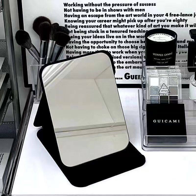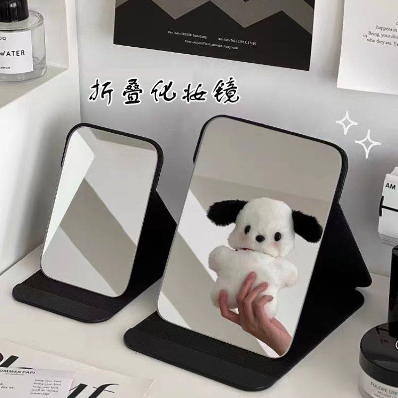 高清化妆镜便携镜子带灯梳妆镜台式桌面宿舍办公室PU皮壳折叠补光