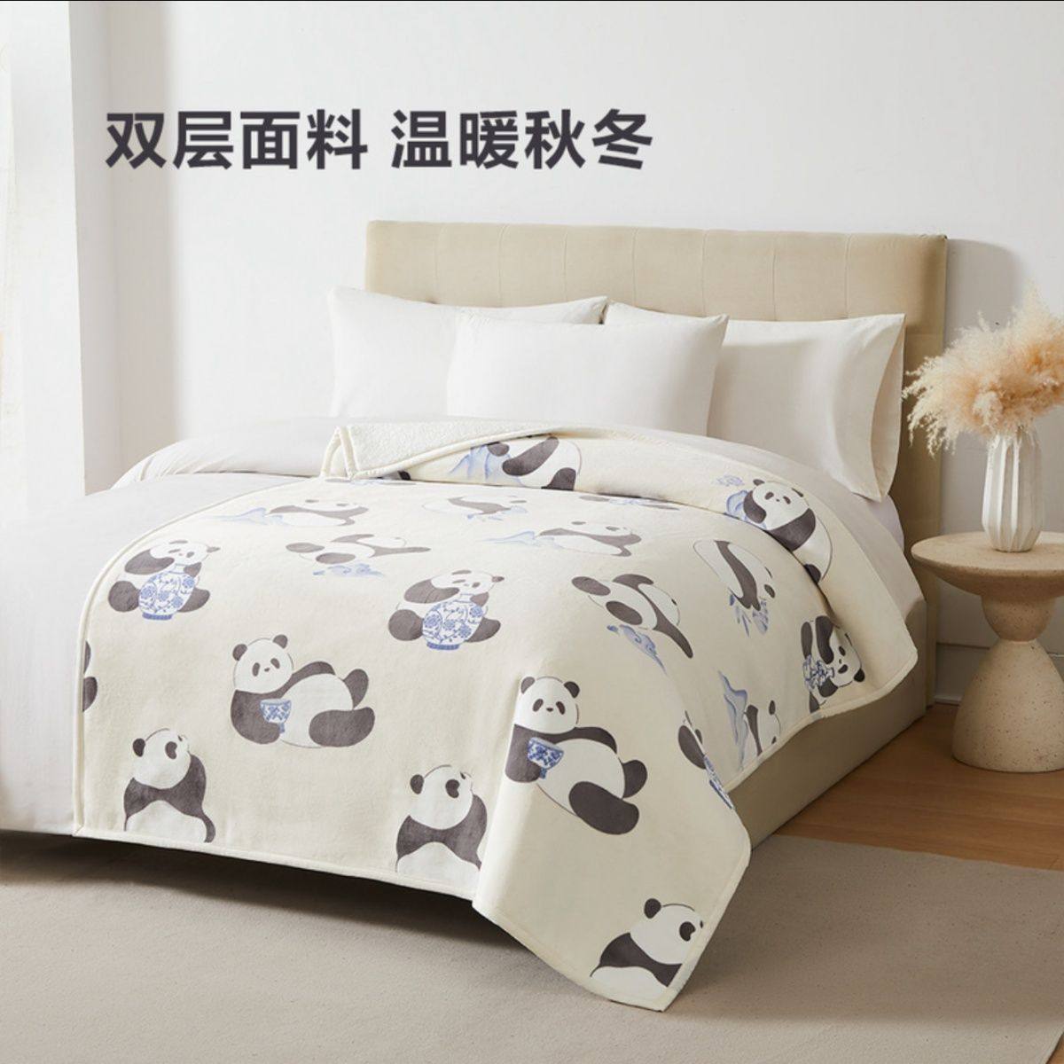 山姆代购 MM抗静电国风熊猫绒毯 雾丝绒仿兔毛绒休闲毛毯子空调毯