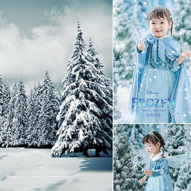 影楼冬天雪地雪景背景布拍照影楼摄影道具儿童拍照写真喷绘背景儿
