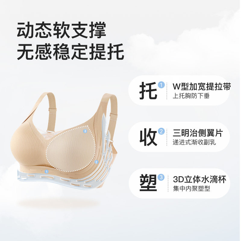 润微提拉女王内衣女大胸显小无痕大码调整防下垂收副乳粉底液文胸