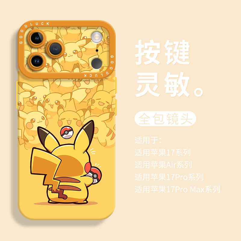 皮卡丘叠叠乐适用iPhone17手机壳新款苹果17promax液态苹果air瞳眼硅胶壳17pro保护套ip16带挂绳15创意14卡通