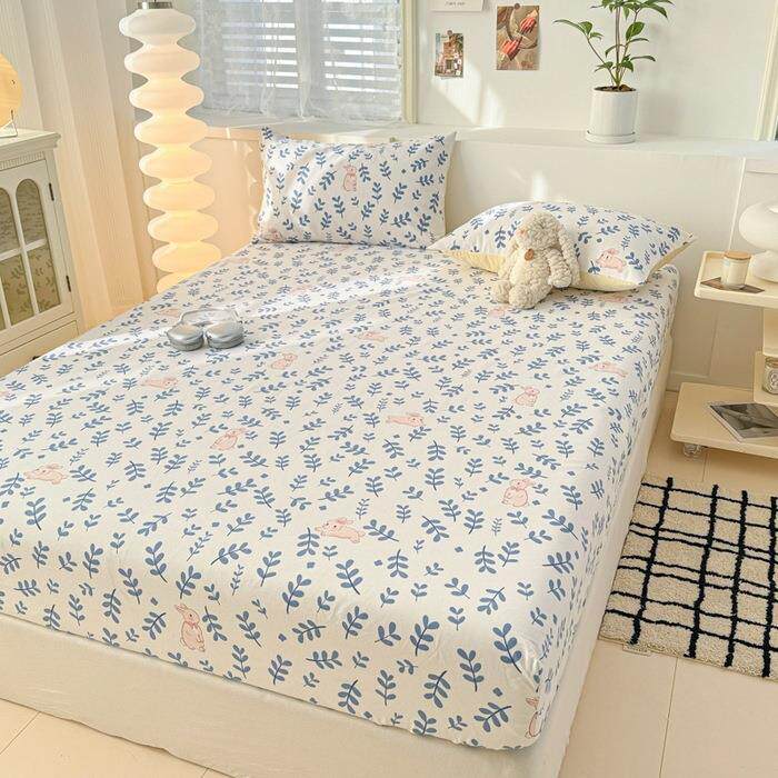 A类全棉碎花老粗布床笠可机洗母婴级纯棉床单1.8m床床罩活性印染