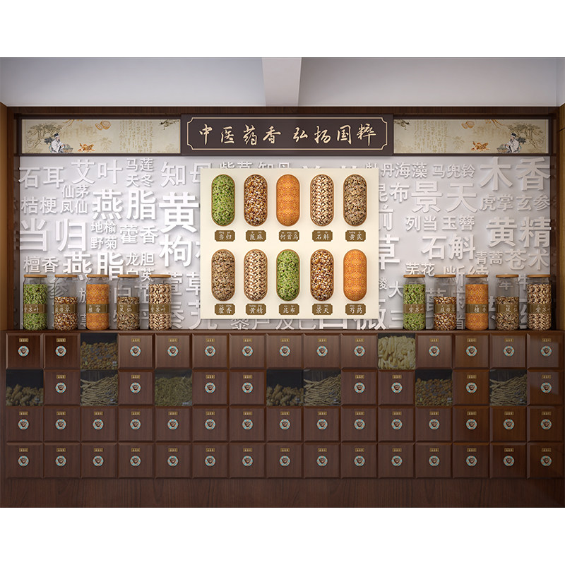 直播间背景墙布3d立体拍照室内中药柜药材主播带货高清挂画装饰布