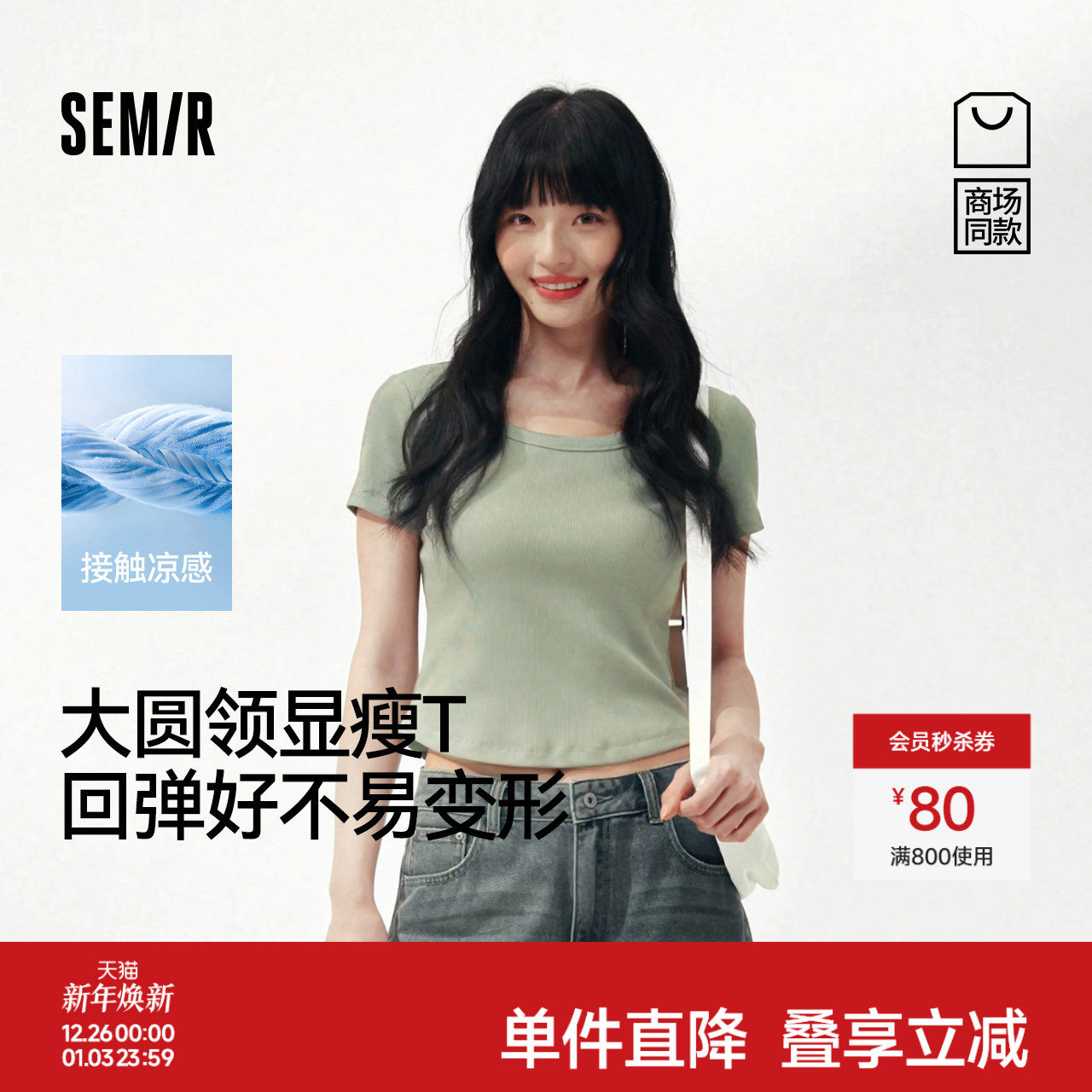 [商场同款]森马短袖T恤女短款凉感紧身2025新款夏大圆领上衣百搭