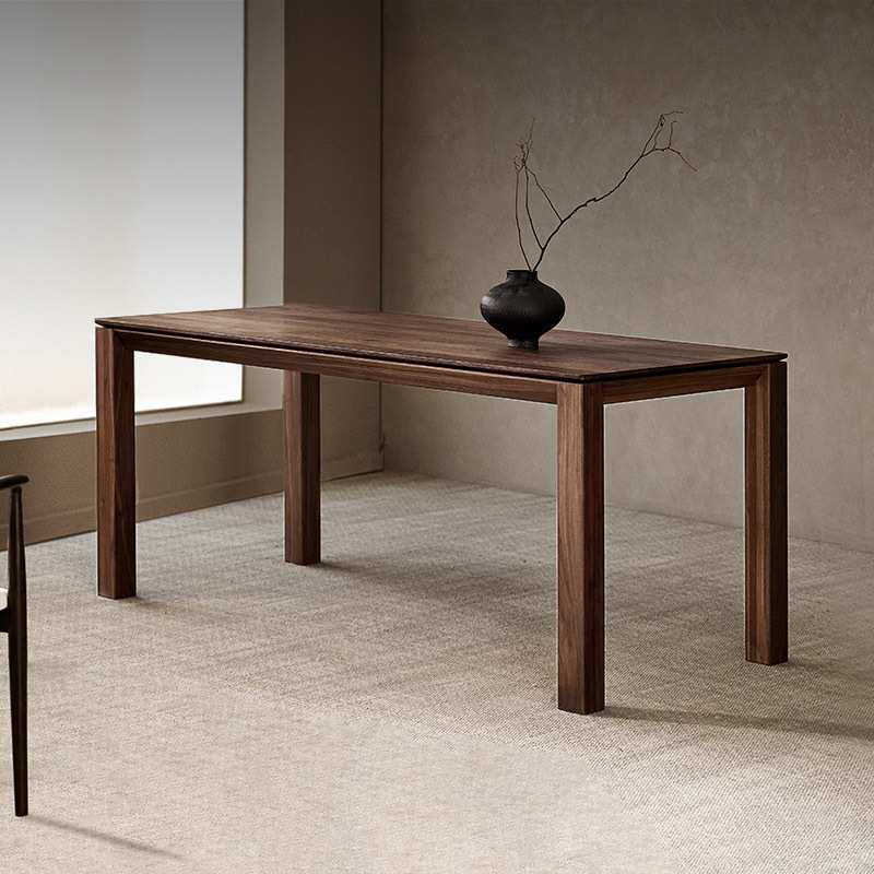 崇匠家具实木餐桌黑胡桃木家用办公桌现代简约加厚长方形大板桌子