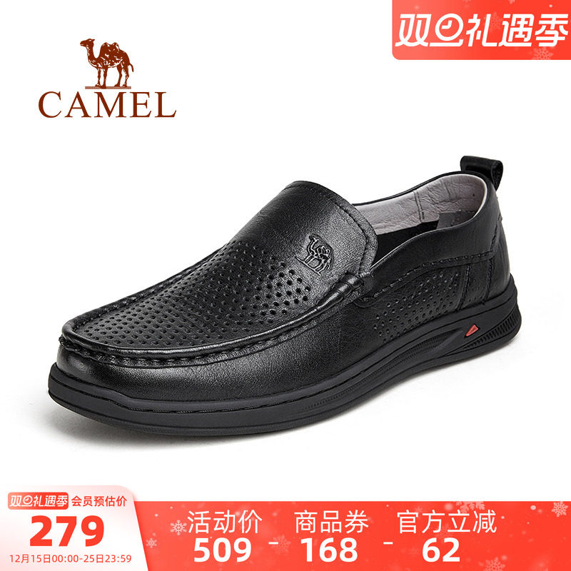 骆驼男鞋2025夏季新款休闲皮鞋男士防滑镂空透气真皮商务爸爸鞋子