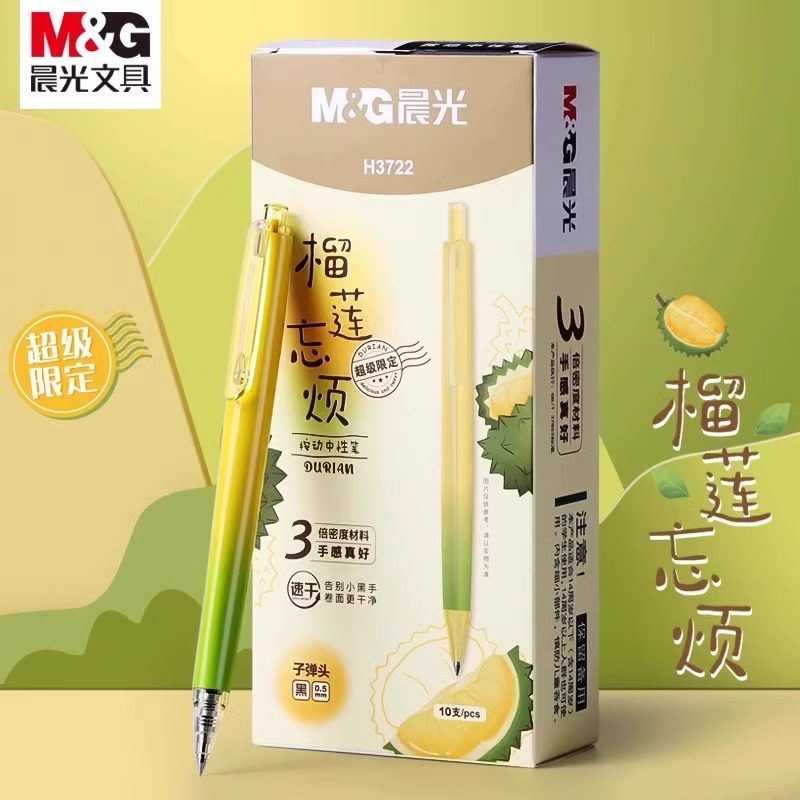 晨光三倍密度按动中性笔学生考试专用免费定制刻名字榴莲忘烦中性笔速干签字笔重手感碳素黑笔水笔礼盒套装笔