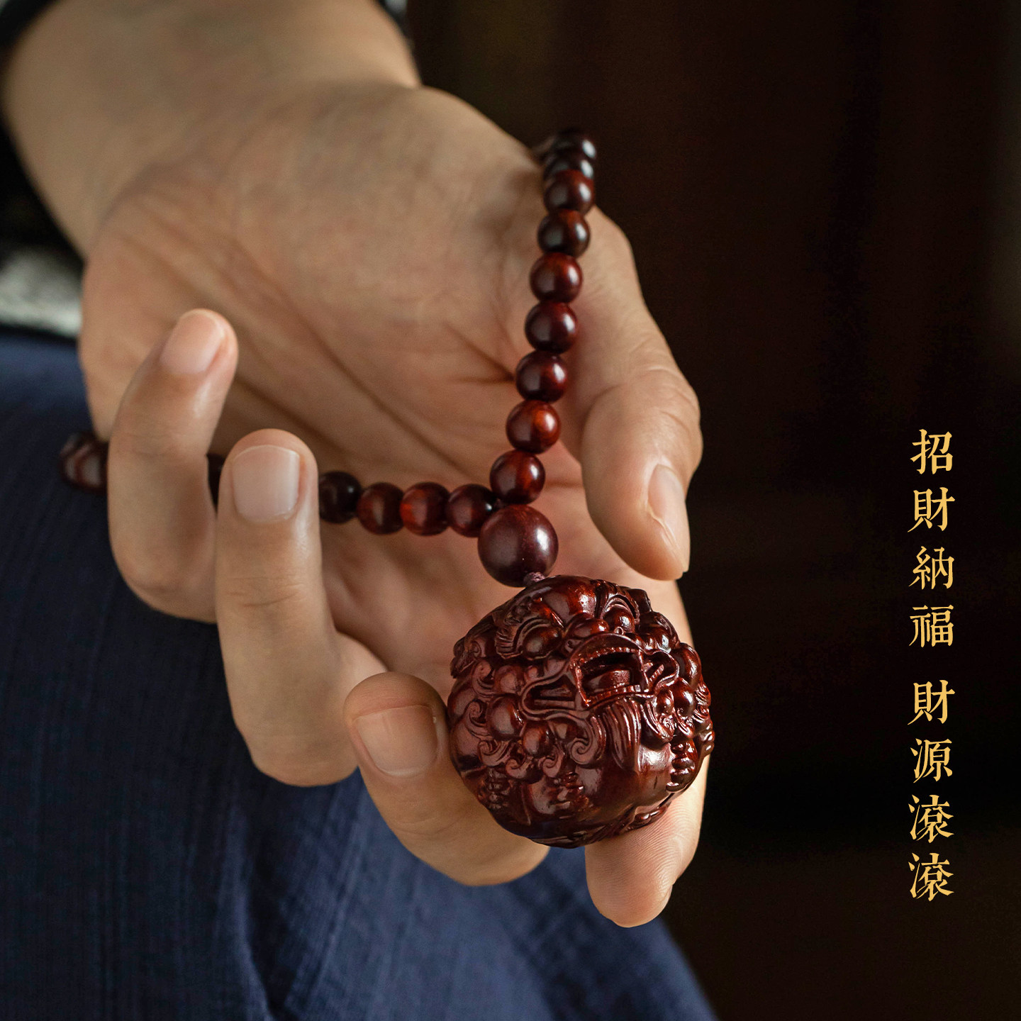 大善堂紫檀貔貅手把件木质文玩随身盘玩把玩件实木雕刻挂饰装饰品
